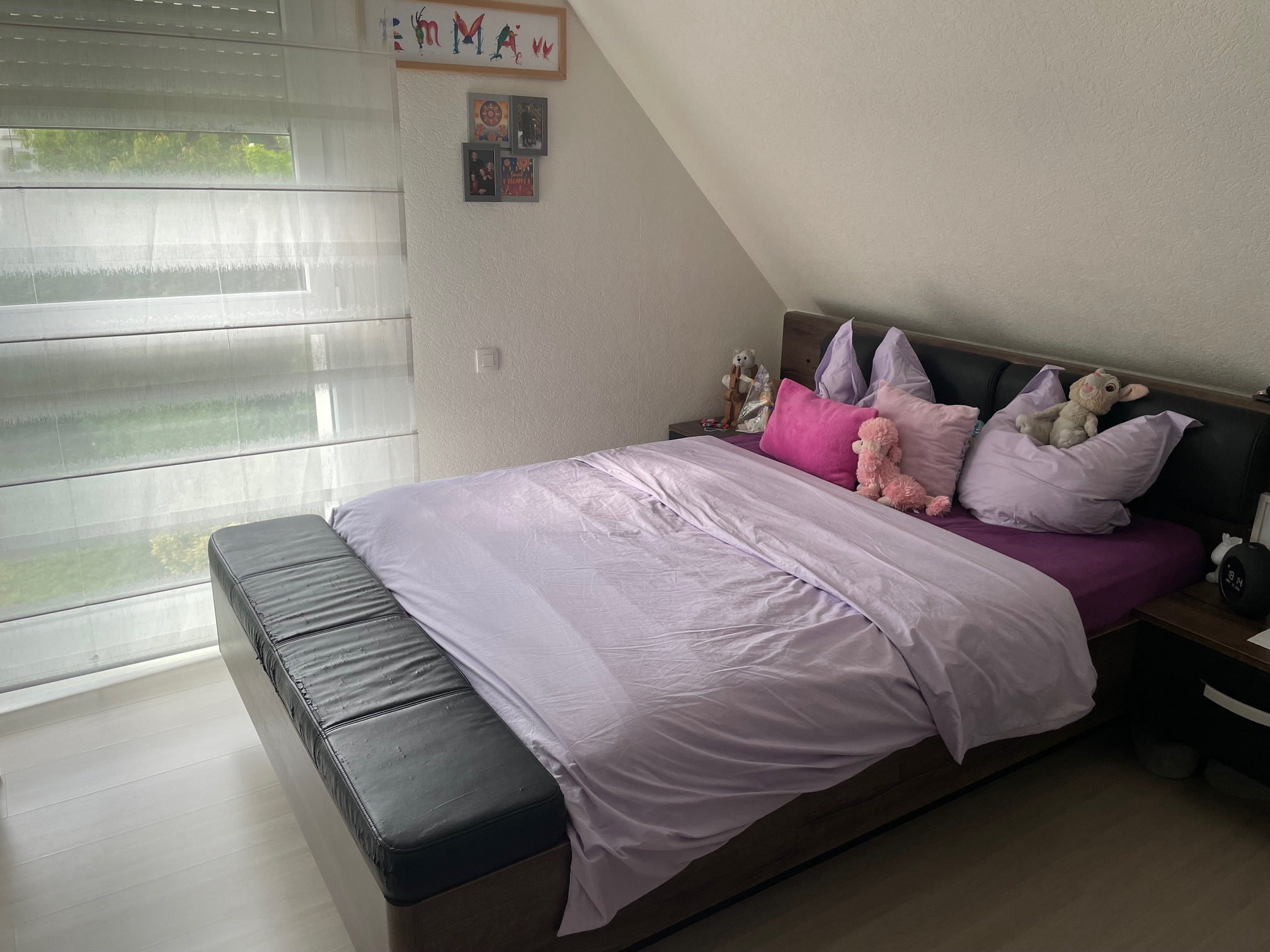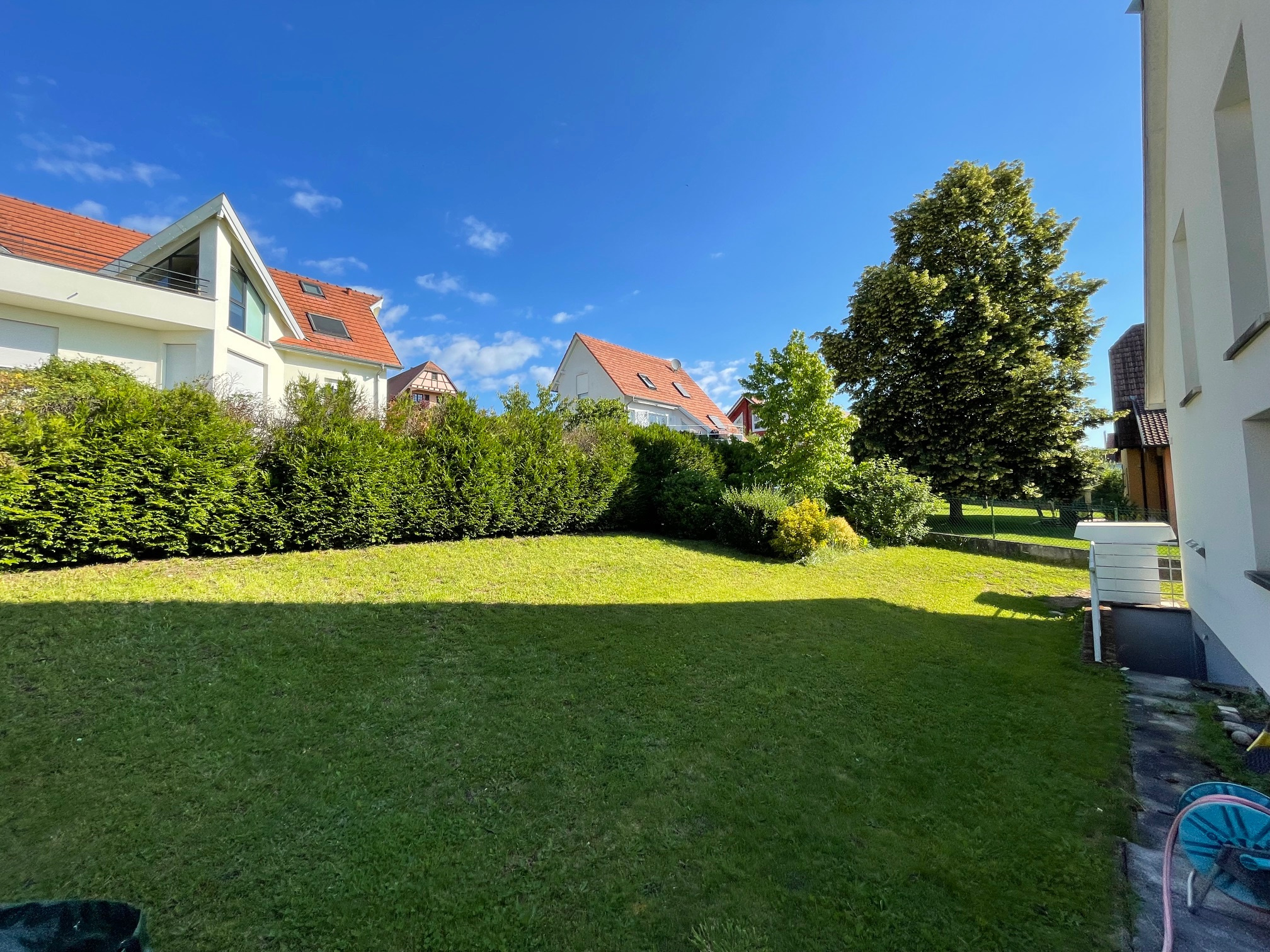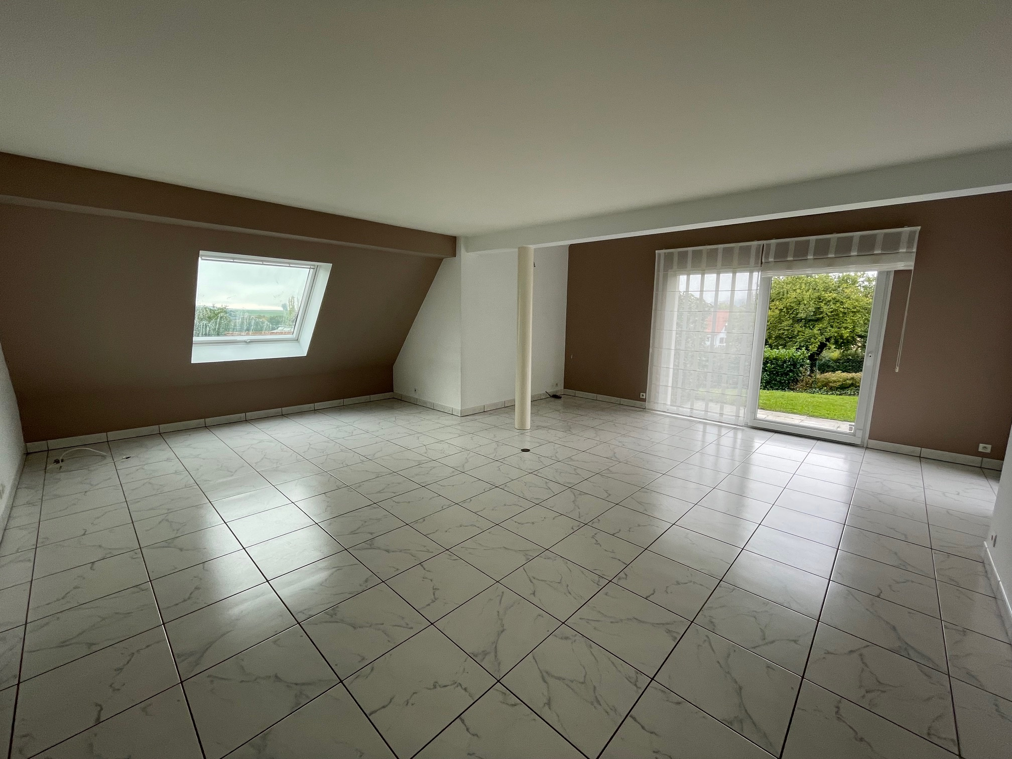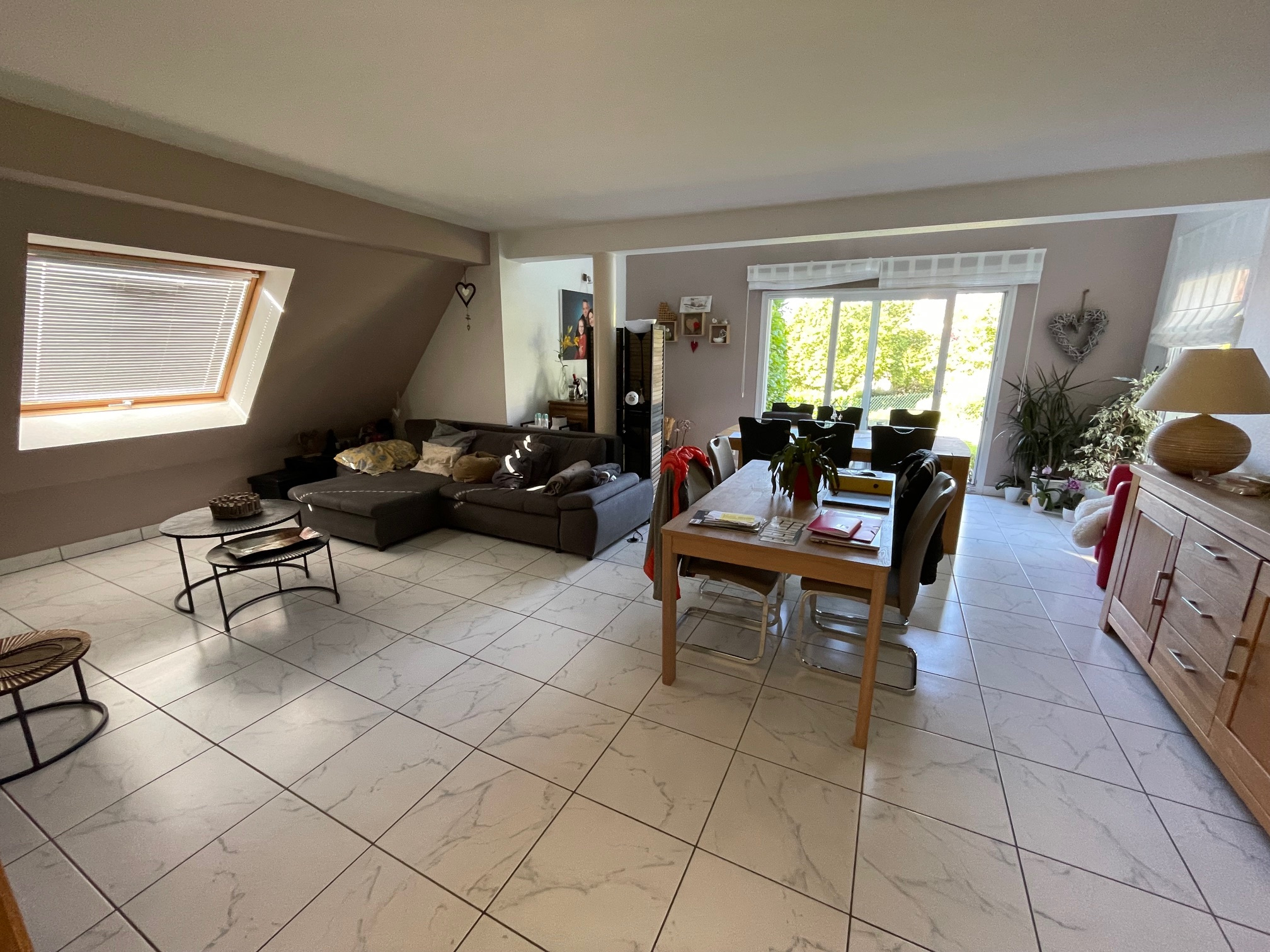 Entrée avec placard, un WC, une chambre, un grand séjour lumineux, une cuisine séparée équipée. (Four, plaque, hotte, frigo, LV) une grande terrasse donnant sur le jardin. A l'étage une grande mezzanine, 2 belles chambres, une SDB avec douche et baignoire.