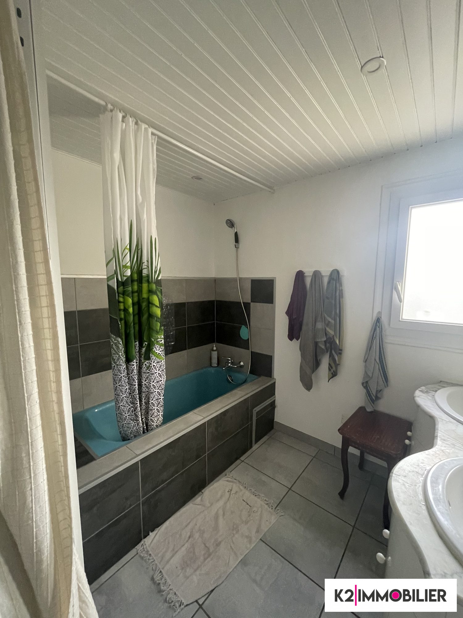 cuisine indépendante équipée, pièce de vie lumineuse donnant sur une terrasse avec vue sur le jardin, toilette séparé avec lave mains, salle d'eau avec double vasque + baignoire, le tout sur un terrain clos de 800 m² piscinable ou constructible