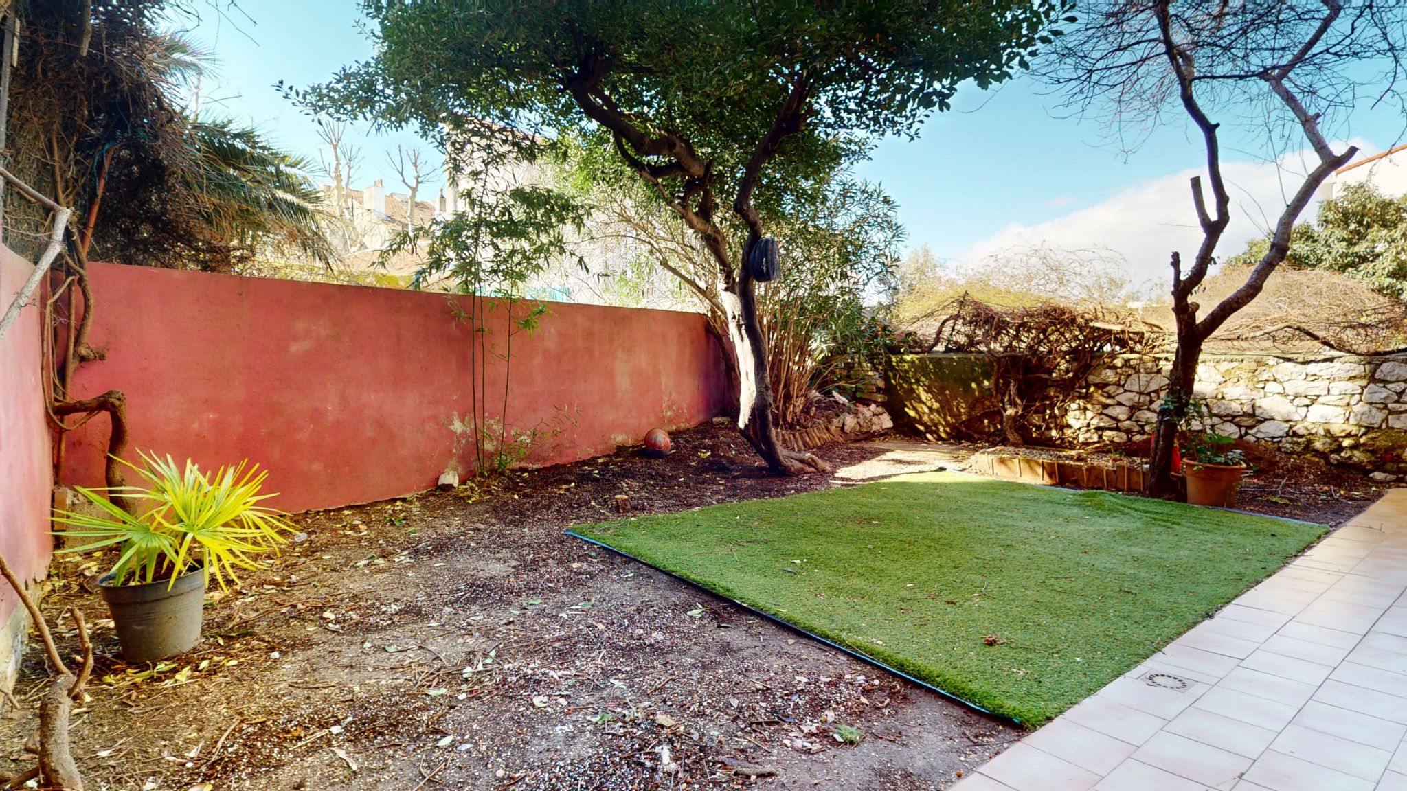 Cet appartement, au rez-de-chaussée d'une petite copropriété bénéficiant d'un garage à vélo, est constitué d'une entrée desservant la cuisine séparée et équipée (plaque et hotte) ainsi que le séjour avec cheminée décorative ouvrant sur le charmant jardin d'environ 55 m2. Le coin nuit, quant à lui, comprend deux chambres avec cheminées ornementales, la salle de bains et les toilettes séparés. Une des chambres donne aussi un accès au jardin clos de murets et ombragé.