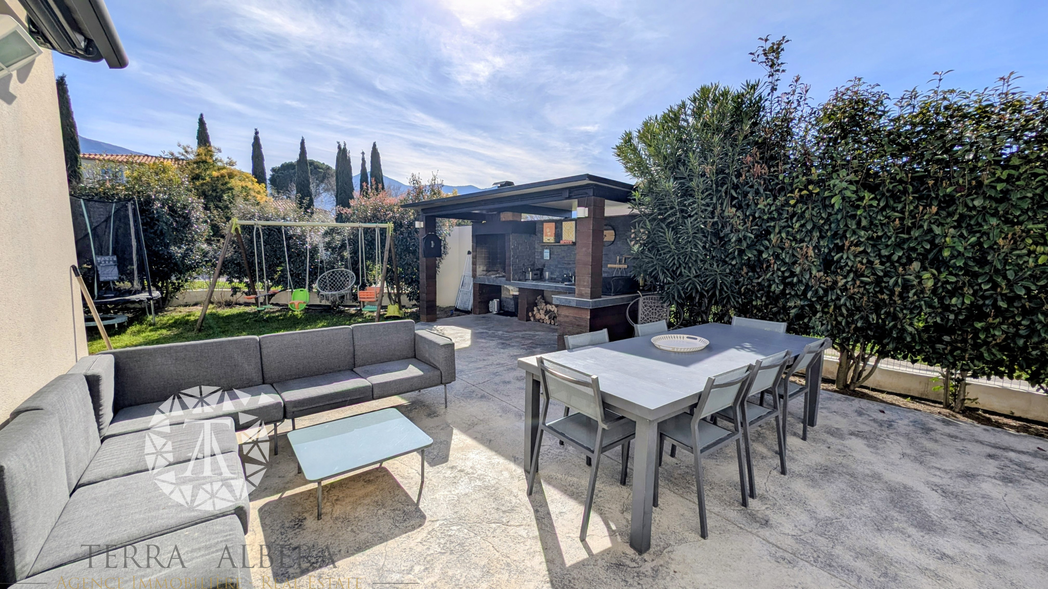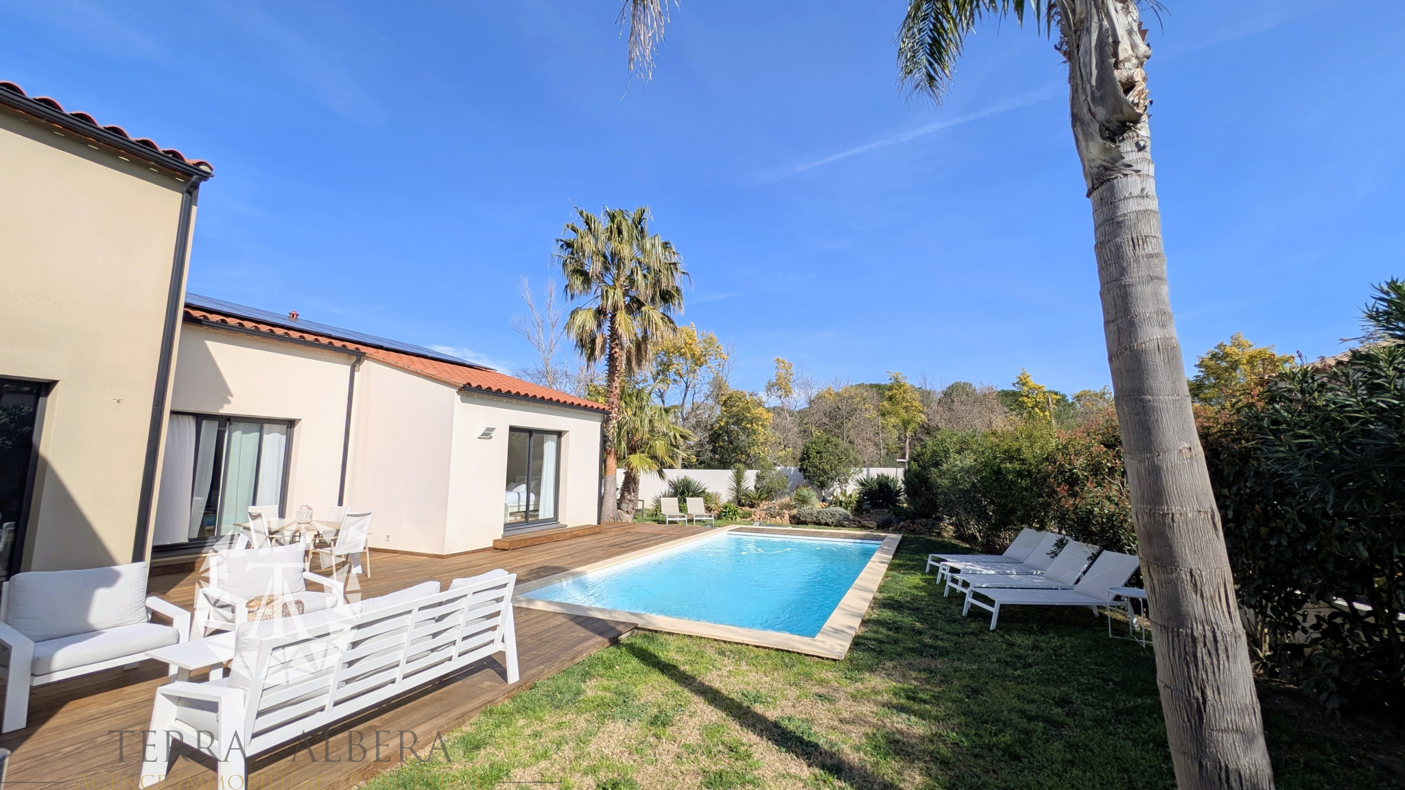 Villa très bien notée énergiquement, possédant des panneaux photovoltaïques, un plancher chauffant et raffraichissant, un ballon thermodynamique, des menuiseries alu, carrelage imitation béton ciré...etc