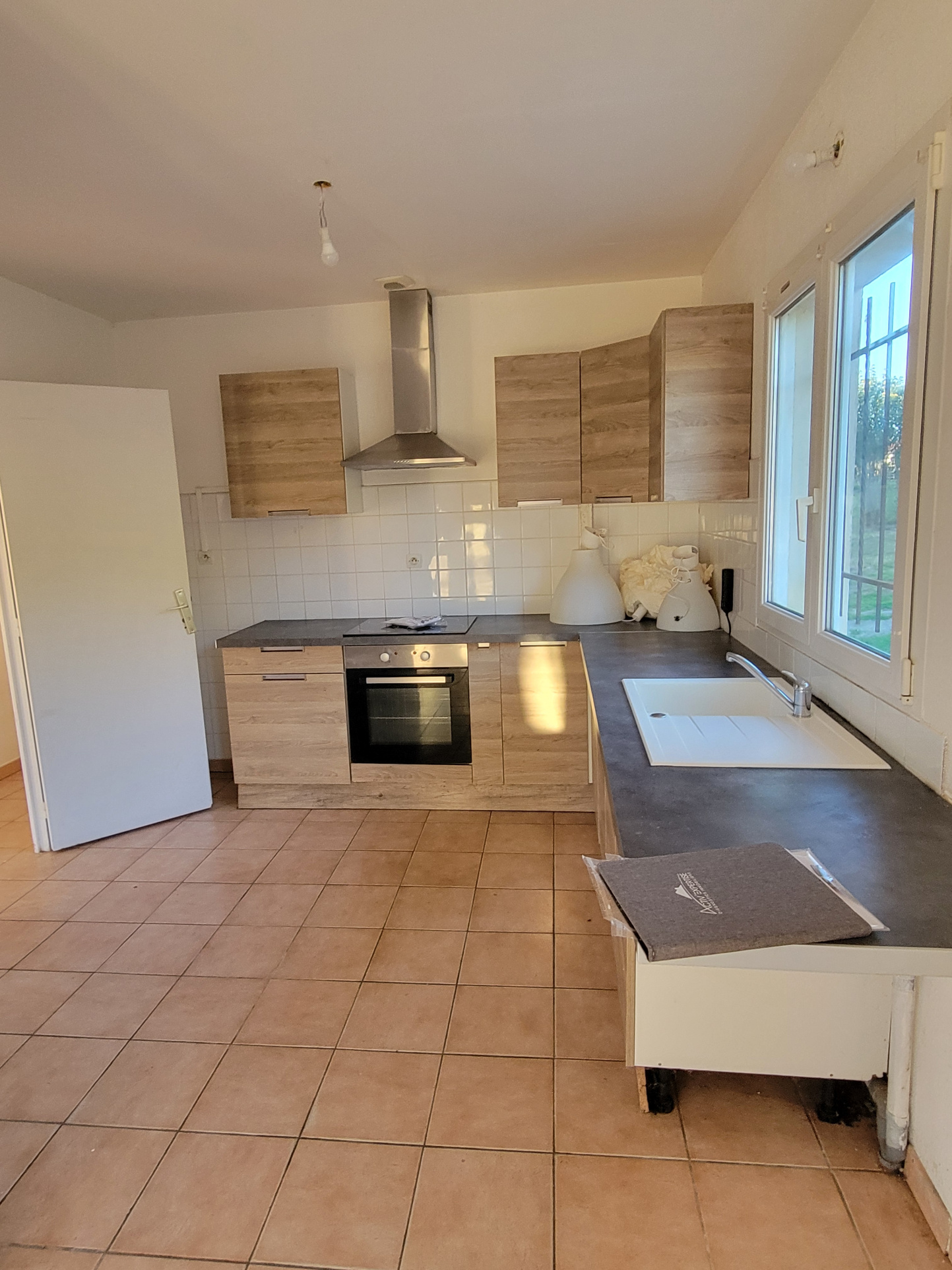 Villa de plain pied implantée sur une parcelle de 1 077 m2, comprenant pièce à vivre avec cuisine ésuipée, 3 chambres, salle de bain.