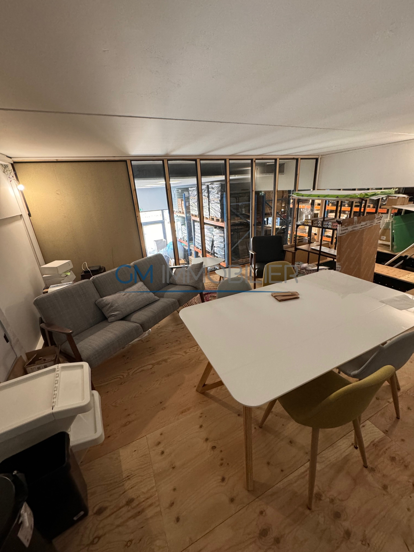 Actuellement configuré en local professionnel, il développe environ 95 m2 sur un niveau avec mezzanine aménagée, sanitaires existants et une belle verrière apportant luminosité et cachet.