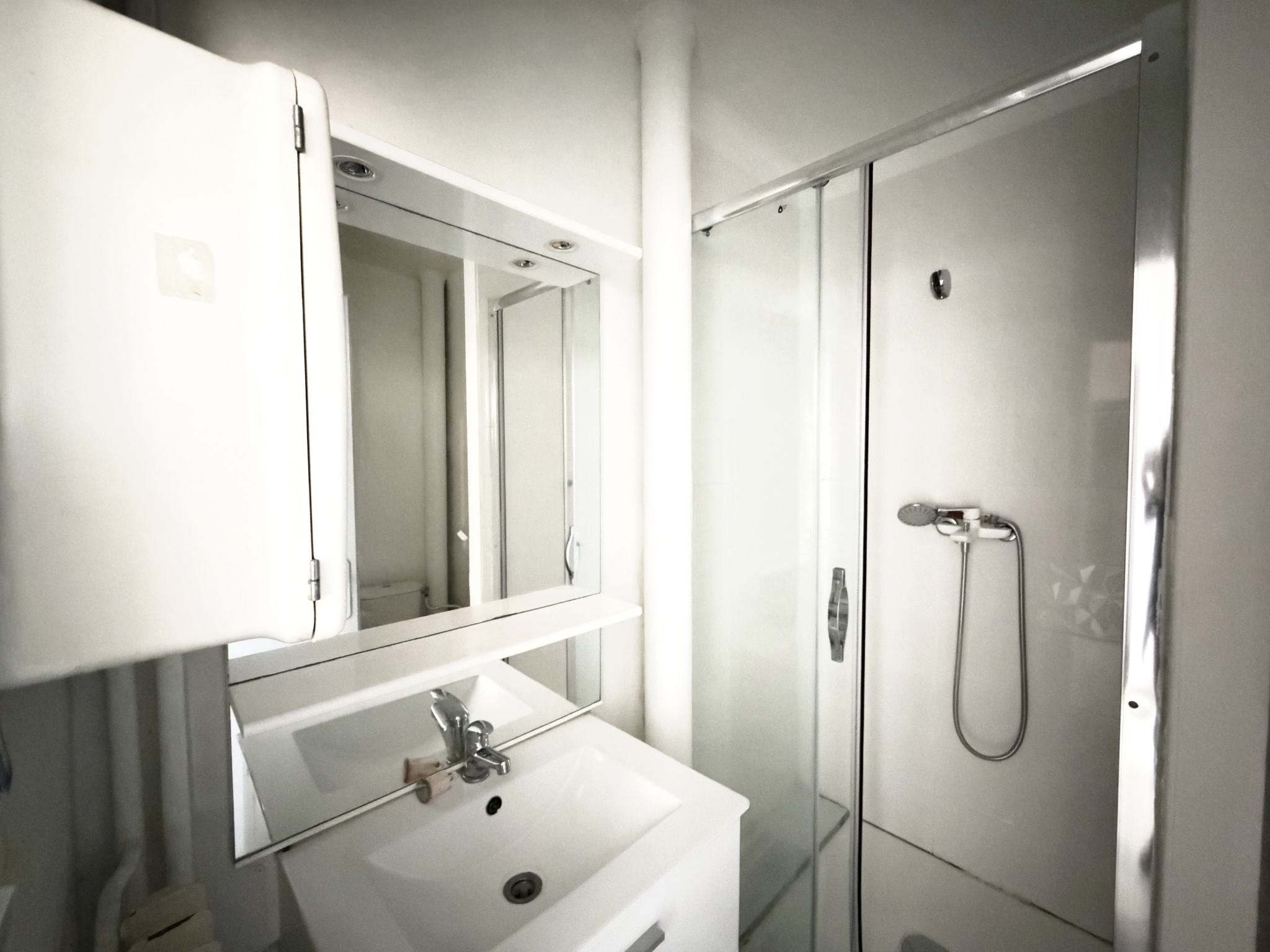 L'appartement comprend une cuisine entièrement rénovée, une pièce de vie/nuit séparée, une salle d'eau neuve avec WC, ainsi qu'un grand espace placard/buanderie.