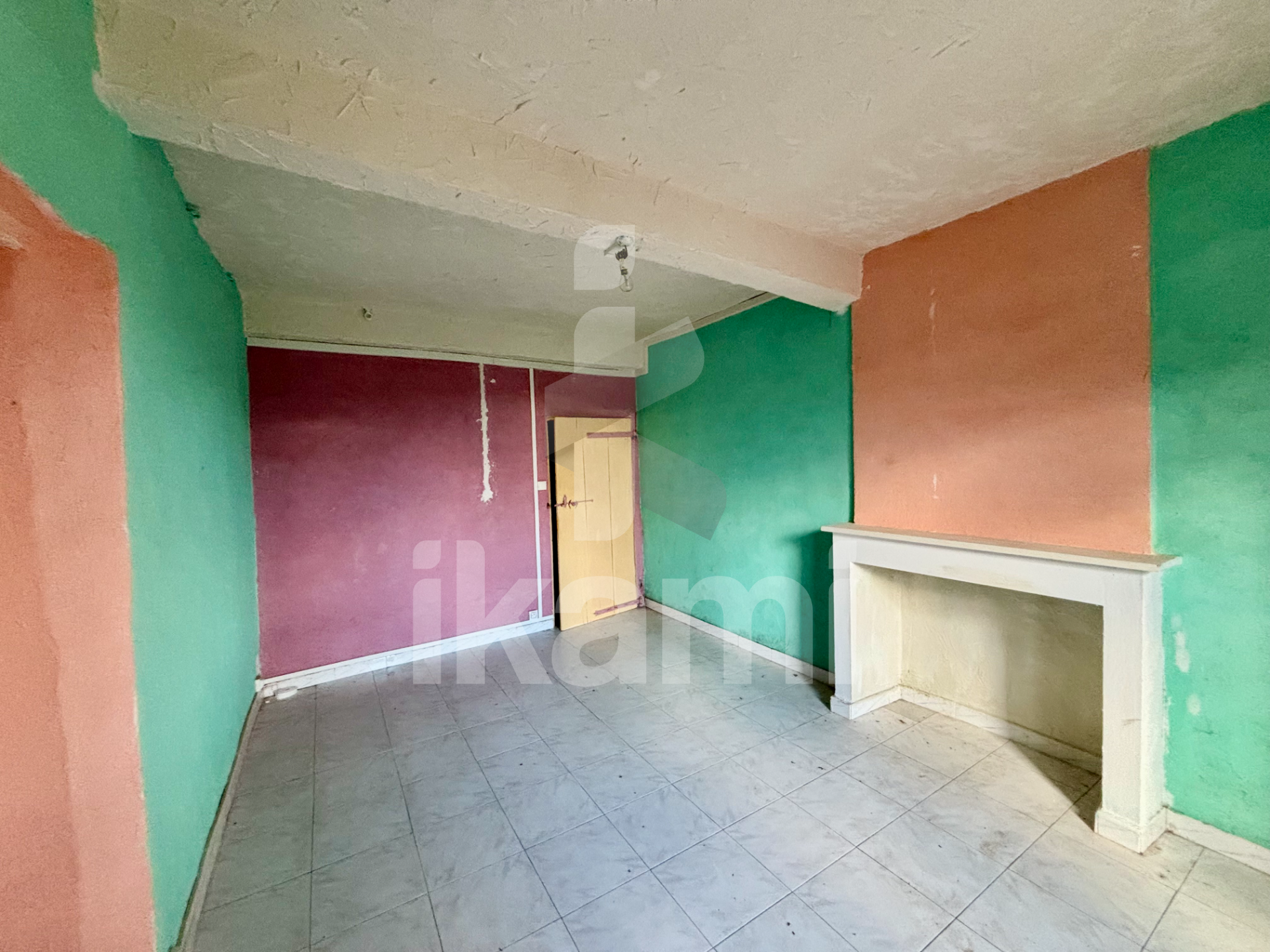 Un hall mène ensuite à une chambre de 14 m2, agrémentée d'une cheminée, apportant une atmosphère chaleureuse et authentique. Vous y trouverez également une salle d'eau à aménager, ainsi que des WC séparés.