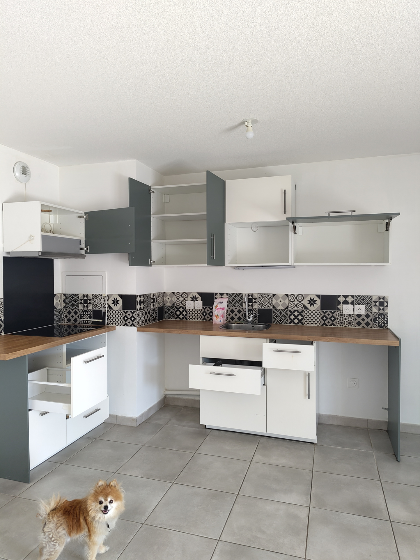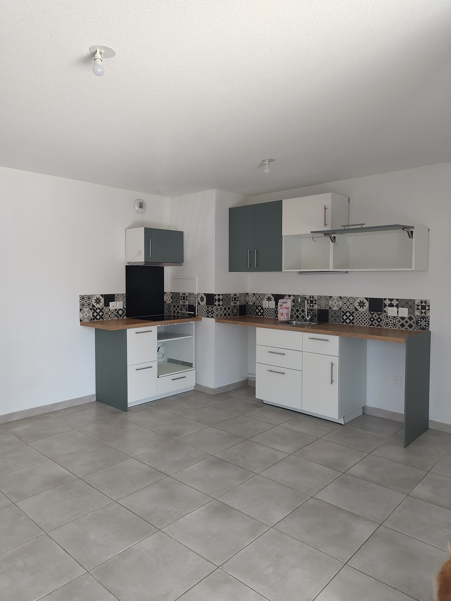 Cet appartement lumineux s'ouvre sur une entrée desservant deux chambres, une salle d'eau et un toilette ainsi que la pièce de vie de 23 m2 avec sa cuisine ouverte et semi équipée.