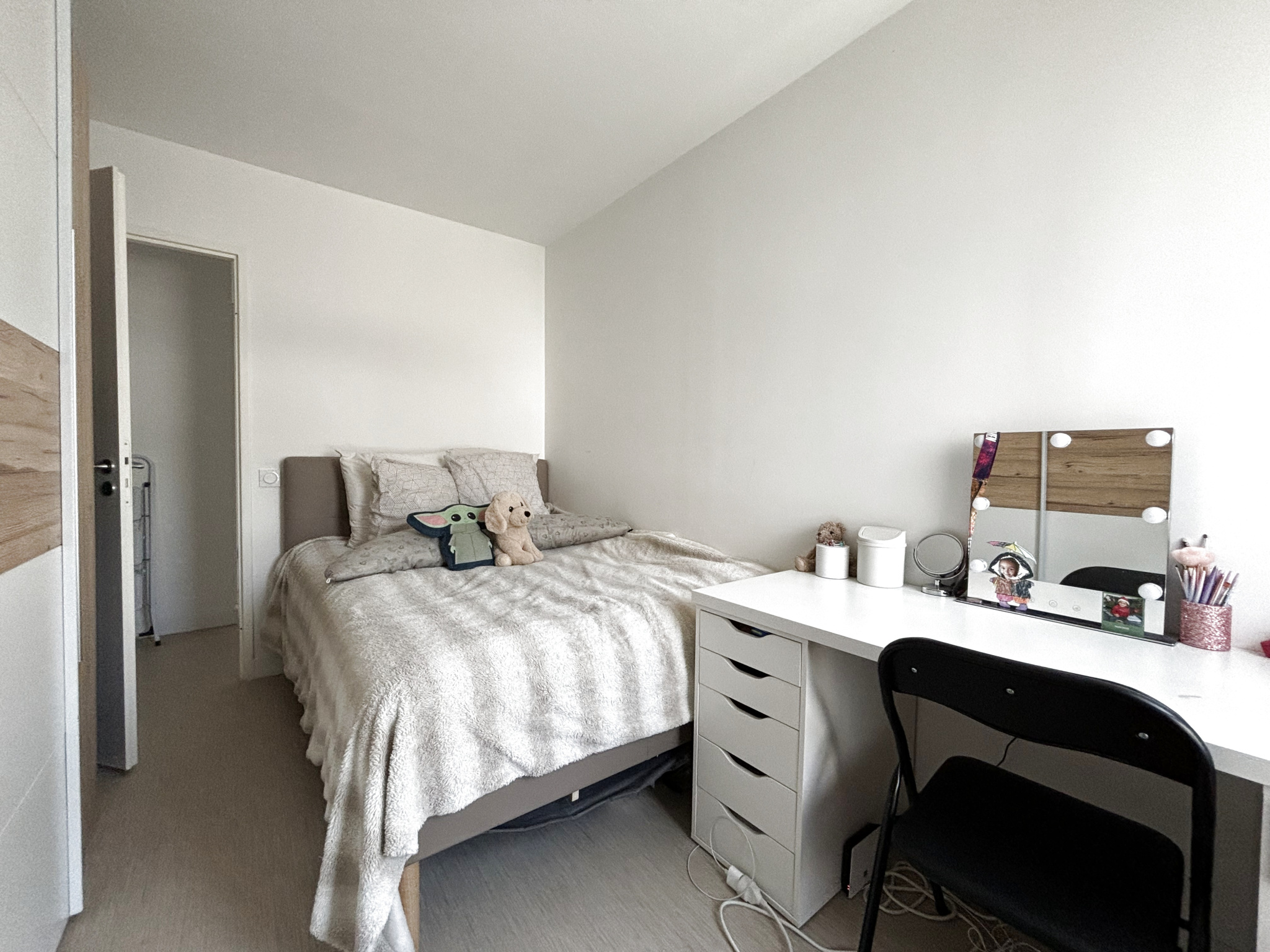 À l'étage, l'espace nuit se compose de trois chambres, d'une salle d'eau et de WC indépendants, garantissant confort et praticité au quotidien.