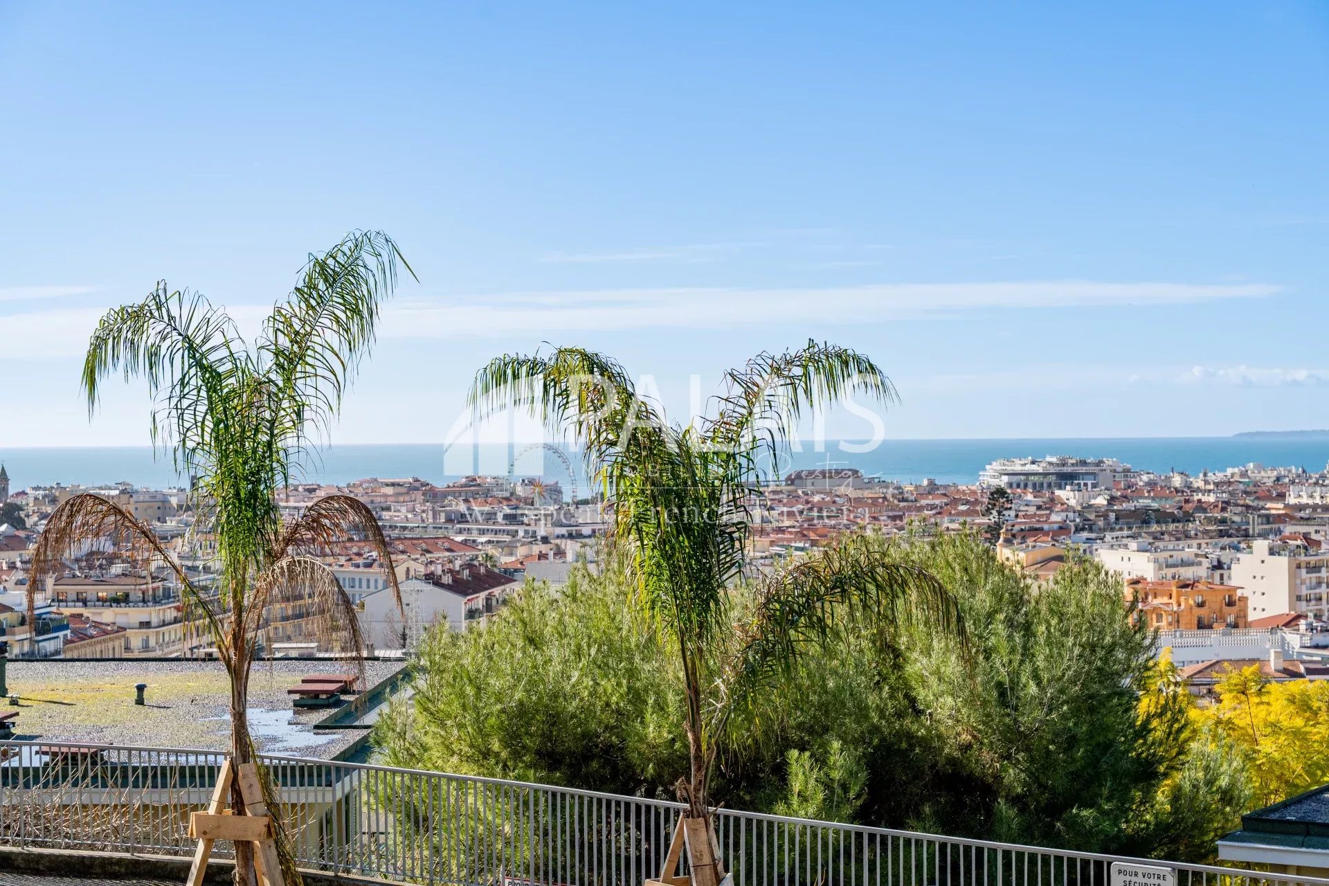 La vue dégagée et privilégiée sur la ville ainsi que sur la mer donne à cet appartement un atout certain. Le balcon/terrasse entourant l'appartement permet de profiter du soleil et de la magnifique vue mais aussi de coins de fraicheur entourés de verdure.