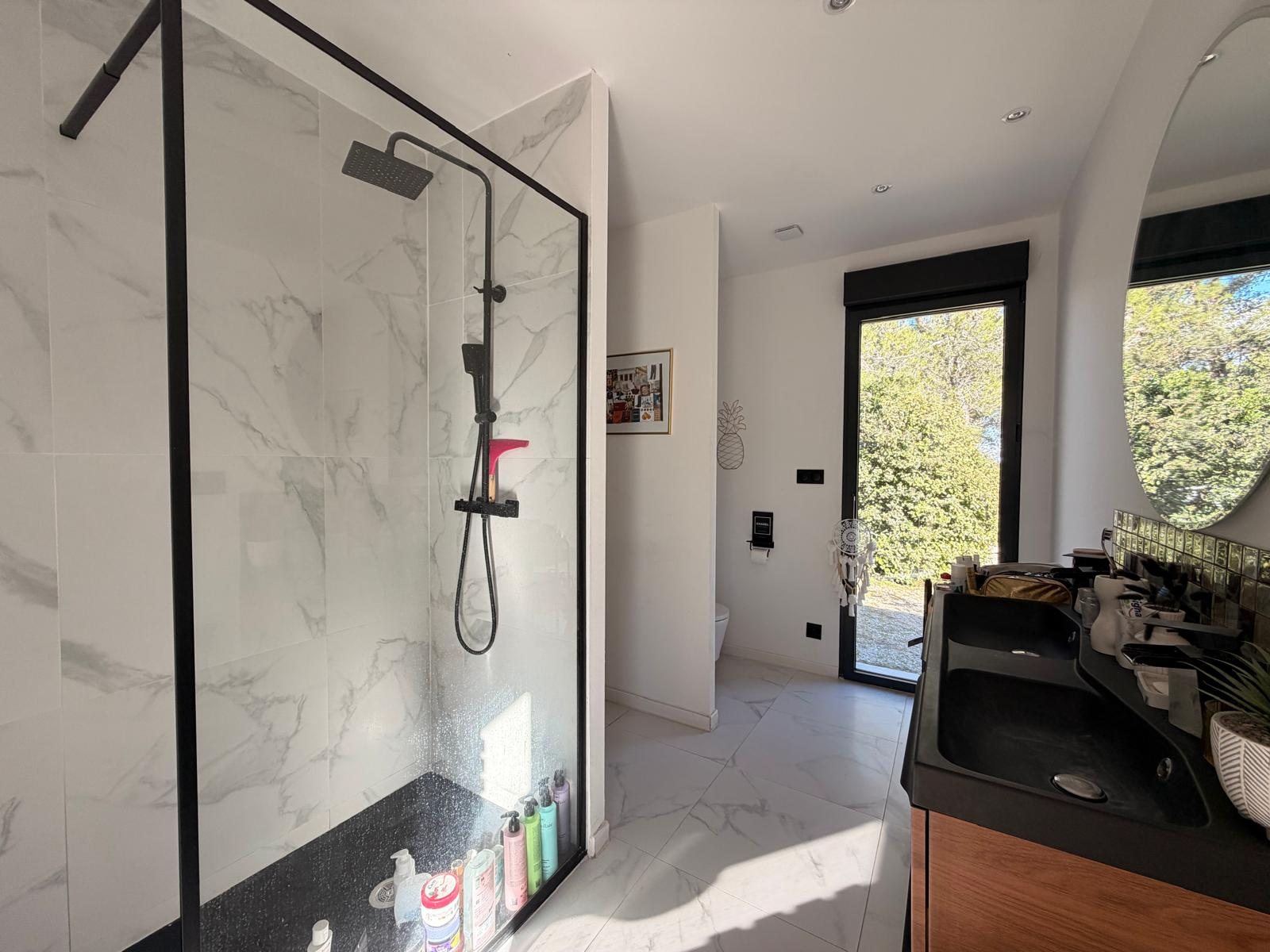 L'agence Portal et Pio vous propose cette très belle demeure familiale construite en 2004 sur une superbe parcelle de 3000 m2 en position dominante au coeur de la pinède. La villa se compose au rez-de-chaussée, d'une pièce de vie de 70 m2 avec cuisine/ cellier et espace bureau, prolongée par une vaste terrasse de 70 m2. Toujours au rez-de-chaussée, vous trouverez une suite composée d'une chambre, d'un dressing et d'une salle d'eau, le tout formant un espace parental de près de 25 m2. Sur le même niveau vous retrouverez une deuxième suite de 40m2 (chambre, salle d'eau, wc et dressing) avec accès indépendant.A l'étage deux belles et vastes chambres et une salle d'eau. Vous serez séduits par l'originalité et la qualité des matériaux, alliant à la perfection le charme de l'ancien et la modernité. Le très beau terrain arboré, à l'abri des regards, est doté d'une piscine, d'un jacuzzi, d'une cuisine d'été et d'un terrain de pétanque. Prestations et construction haut de gamme. Plancher chauffant rafraîchissant sur les deux niveaux. Enorme atout supplémentaire: une vaste garage de 60 m2 offre un énorme potentiel. A voir très vite