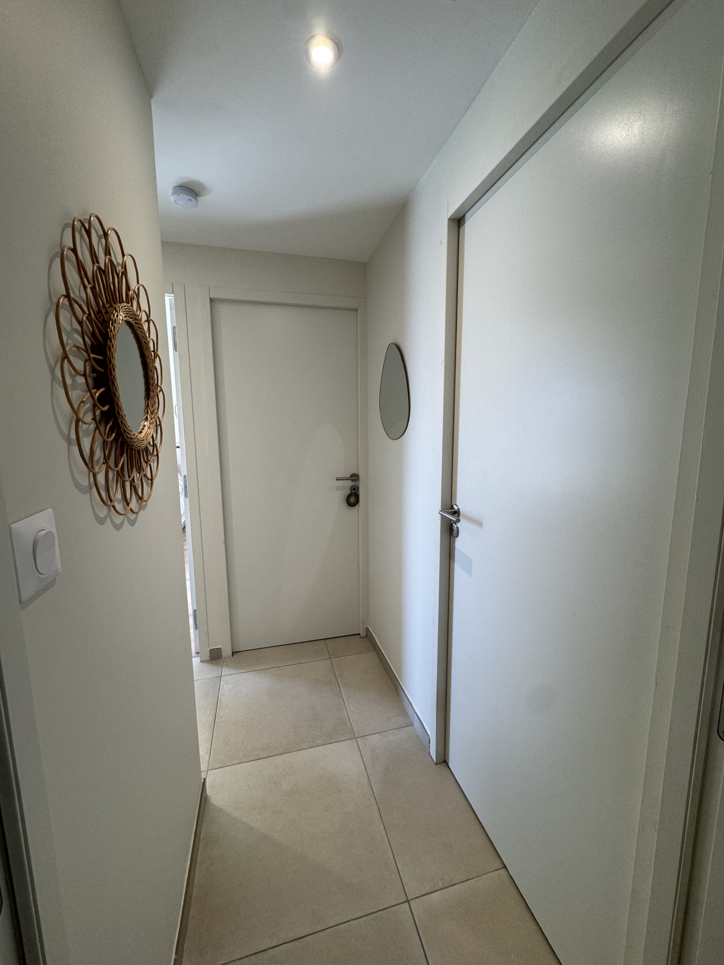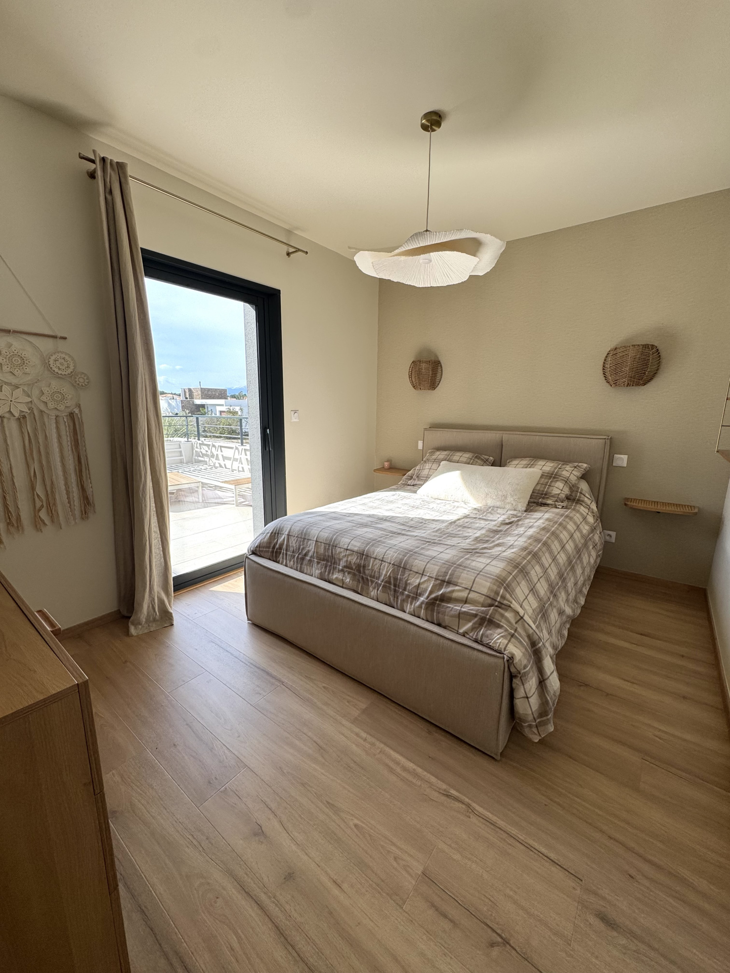Un dégagement nuit dessert un wc séparé avec fenêtre, une salle d'eau avec douche à l'italienne et fenêtre, une première chambre avec son grand dressing aménagé et une seconde chambre avec sa télévision et sortie terrasse. Un espace buanderie avec tout le nécessaire : machine à laver, sèche linge, étendoir, fer et table à repasser.