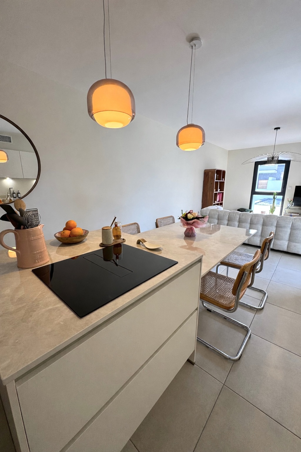 La cuisine est toute équipée avec ilot central, plan de travail et table en granit. Plaques avec hotte intégrée, four et microonde encastrés, lave vaisselle et nombreux rangements. Accessoires Smeg, vaisselles et ustensiles de cuisine, tout est fourni. Un salon chaleureux et cocooning avec son canapé très confortable, télévision et mobiliers contemporains. La terrasse de 22 m2 exposée plein sud, permet le prolongement de l'espace vie avec un salon de jardin et parasol, le tout sans vis à vis et arboré.