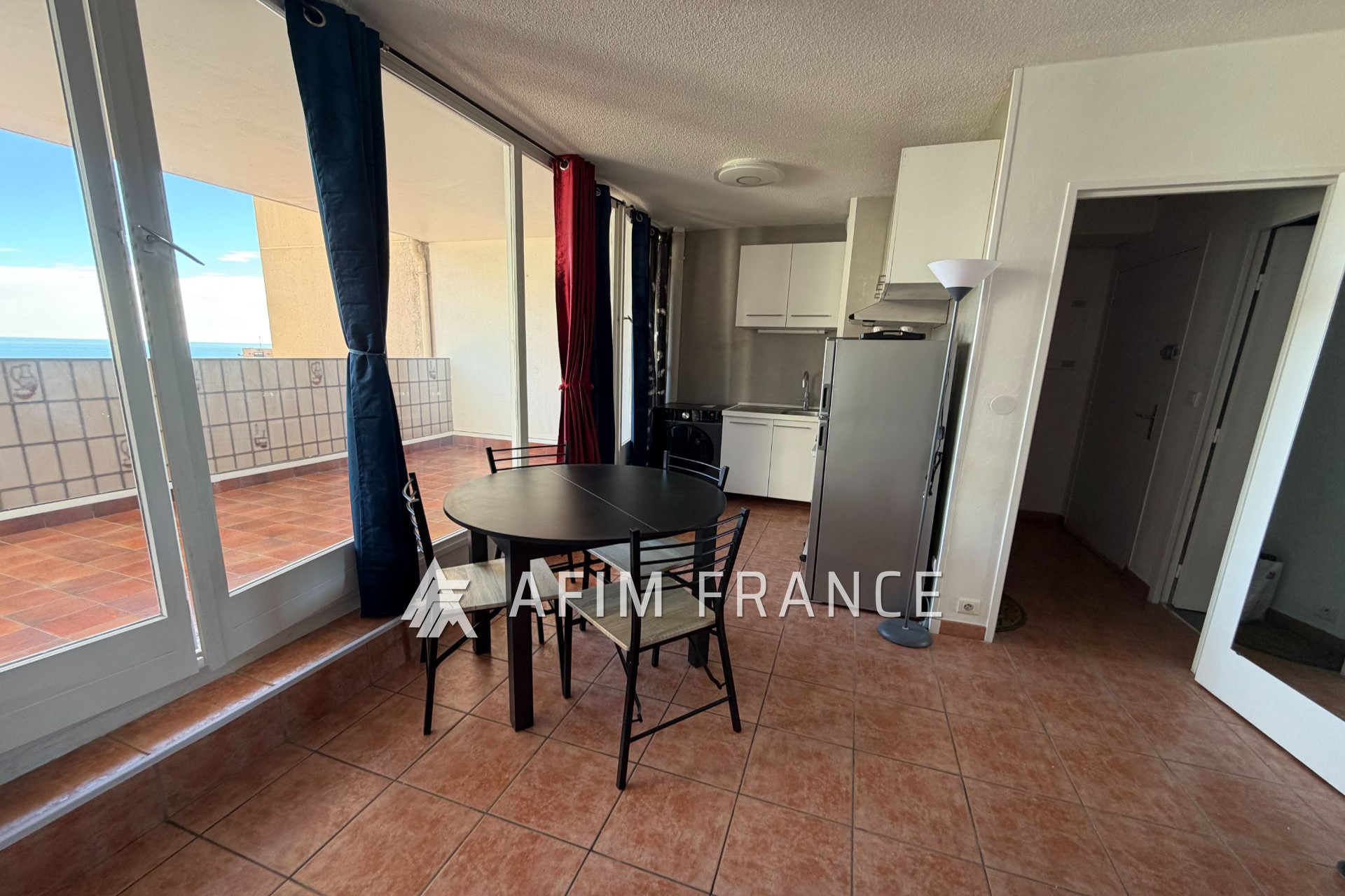 Joli studio meublé au 4? étage d'une résidence sécurisée avec ascenseur, dans le quartier Guynemer à Beausoleil. Il offre un séjour lumineux ouvrant sur une grande terrasse vue mer, cuisine américaine équipée et une salle de bain.
