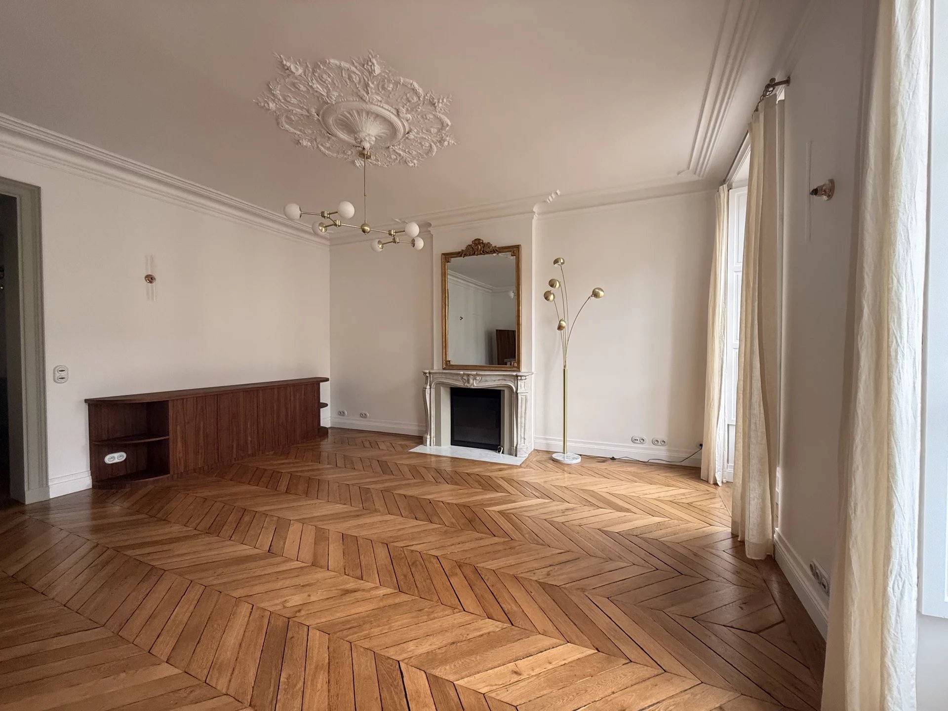 Le salon donnant sur 3 balcons est baigné de lumière naturelle grâce à ses grandes baies vitrées, créant une ambiance chaleureuse et accueillante. Profitez d'un cadre élégant avec des détails architecturaux raffinés, tels que des moulures au plafond et une cheminée majestueuse.