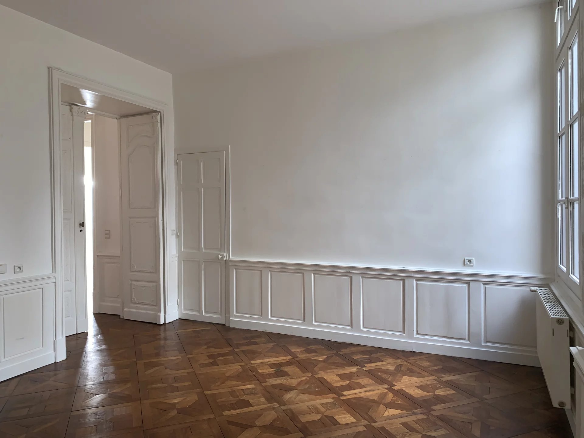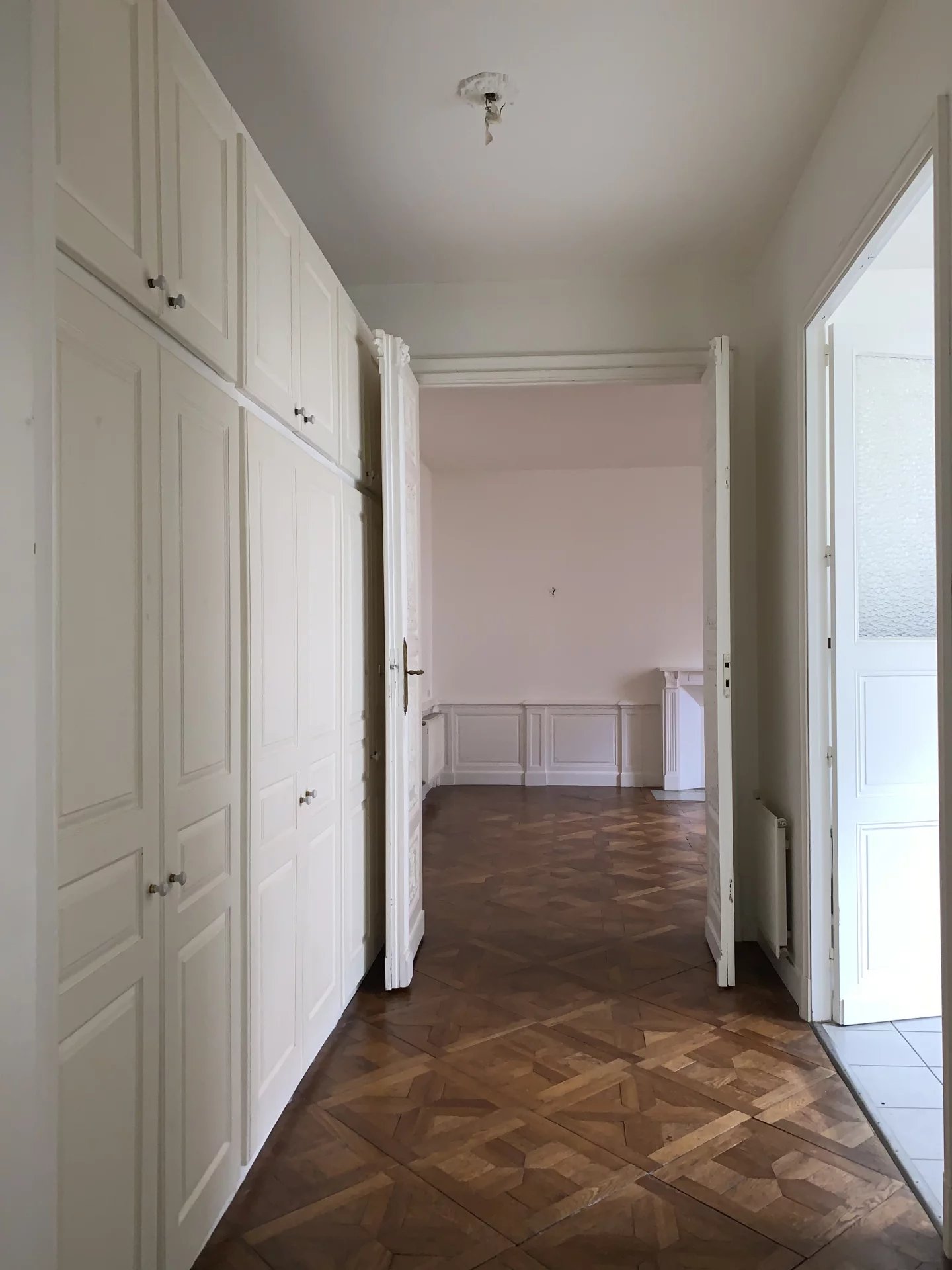 Vous découvrirez un hall d'entrée de 29m² avec vitrail et boiseries ouvragées, plafond à caisson, un salon spacieux de 31m², une cuisine à vivre aménagée, deux chambres, salle de bains et toilettes séparées, de nombreux espaces de rangement. Cet appartement saura vous séduire par son charme et son cachet, moulures, boiseries, parquet marqueté sont bien sûr au rendez-vous !