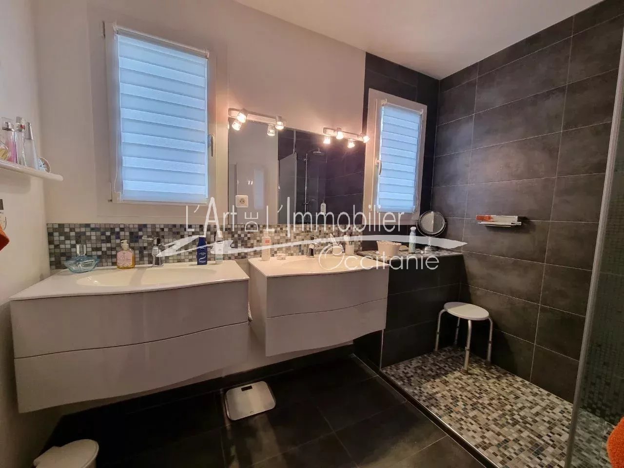 Dans quartier résidentiel, Belle Maison traditionnelle, de type 4/5, édifiée sur un beau terrain clos, de 1000 m² environ. Son intérieur est composée, de son entrée, dégagement, escalier, Séjour lumineux, plafond cathédrale, cheminée à foyer ouvert, cuisine équipée, indépendante, ouverte sur une belle véranda, cellier, dégagement couloir pour la partie nuit du rez de chaussée, Toilettes, salle d'eau, 2 chambres, placards, buanderie. A l'étage une belle chambre de 24 m² environ + 2 greniers. Un grand garage indépendant. Belles prestations, belle construction.