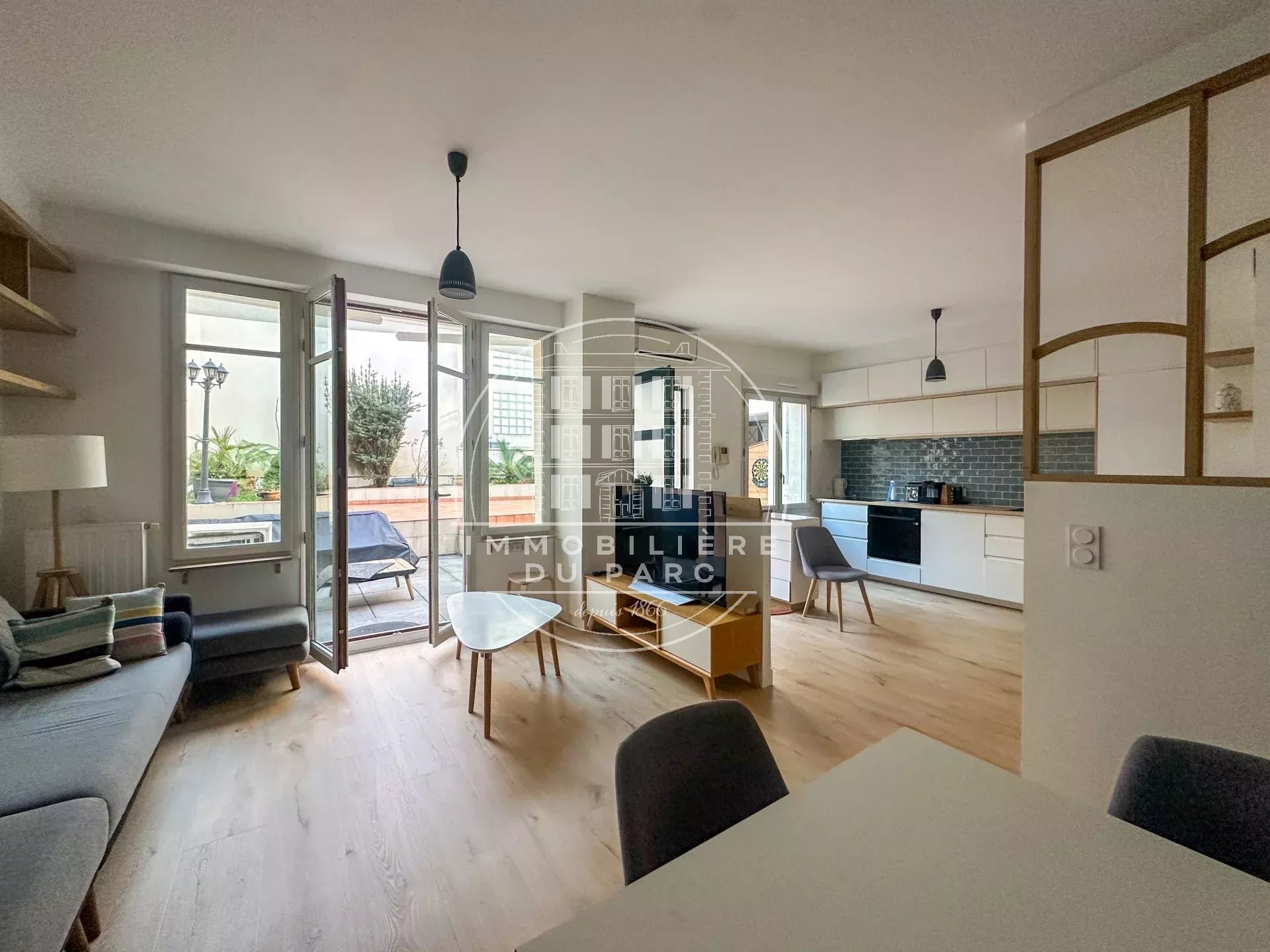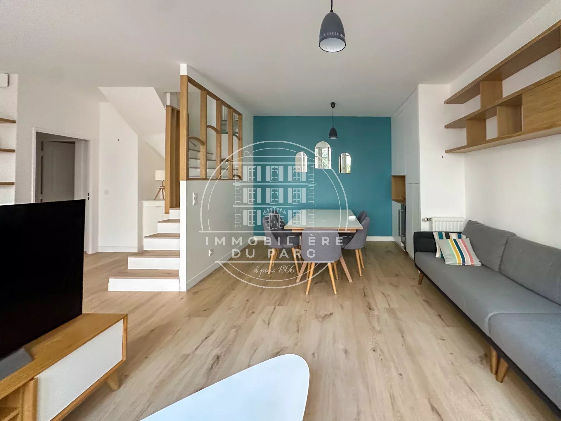 Rue Ernest André, en plein centre ville, bel appartement refait à neuf loué meublé au charme d’une maison de ville comprenant : Au rez-de-chaussée : une entrée, une cuisine ouverte aménagée et équipée, un séjour / salle à manger ouvrant sur la terrasse, un w.c. séparé, ainsi qu’une salle de douche. Le premier étage comprend deux chambres avec de nombreux rangements, dont une avec mezzanine sous combles, ainsi qu’une salle de bain avec w.c. Disponible de suite. Une cave en sous-sol ainsi qu’un emplacement double de stationnement complètent ce bien. À visiter sans tarder ! Information Honoraires - Pour les particuliers : 12.10€/m² + 3.03€/m² pour l’état des lieux (Loi ALUR). Bail société : un mois de loyer + frais d’état des lieux (3€/m² ou huissier). 0130155390 Les informations sur les risques auxquels ce bien est exposé sont disponibles sur le site Géorisques : www. georisques. gouv. fr