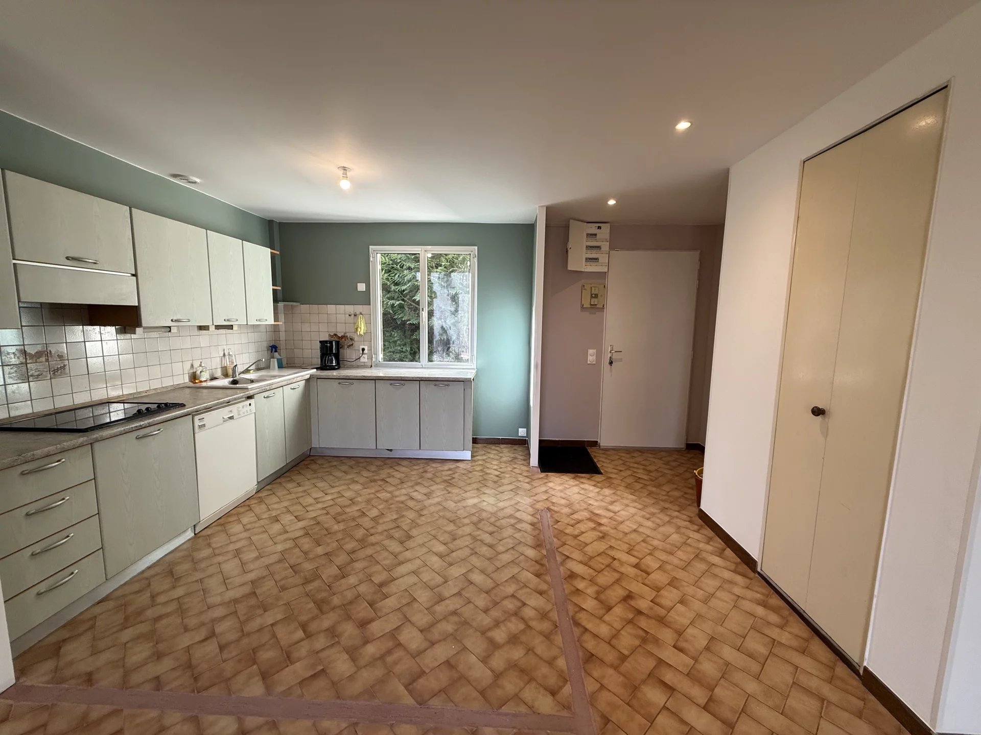 Une entrée donnant sur un bel espace séjour / salle à manger avec cuisine ouverte, lumineux et convivial.