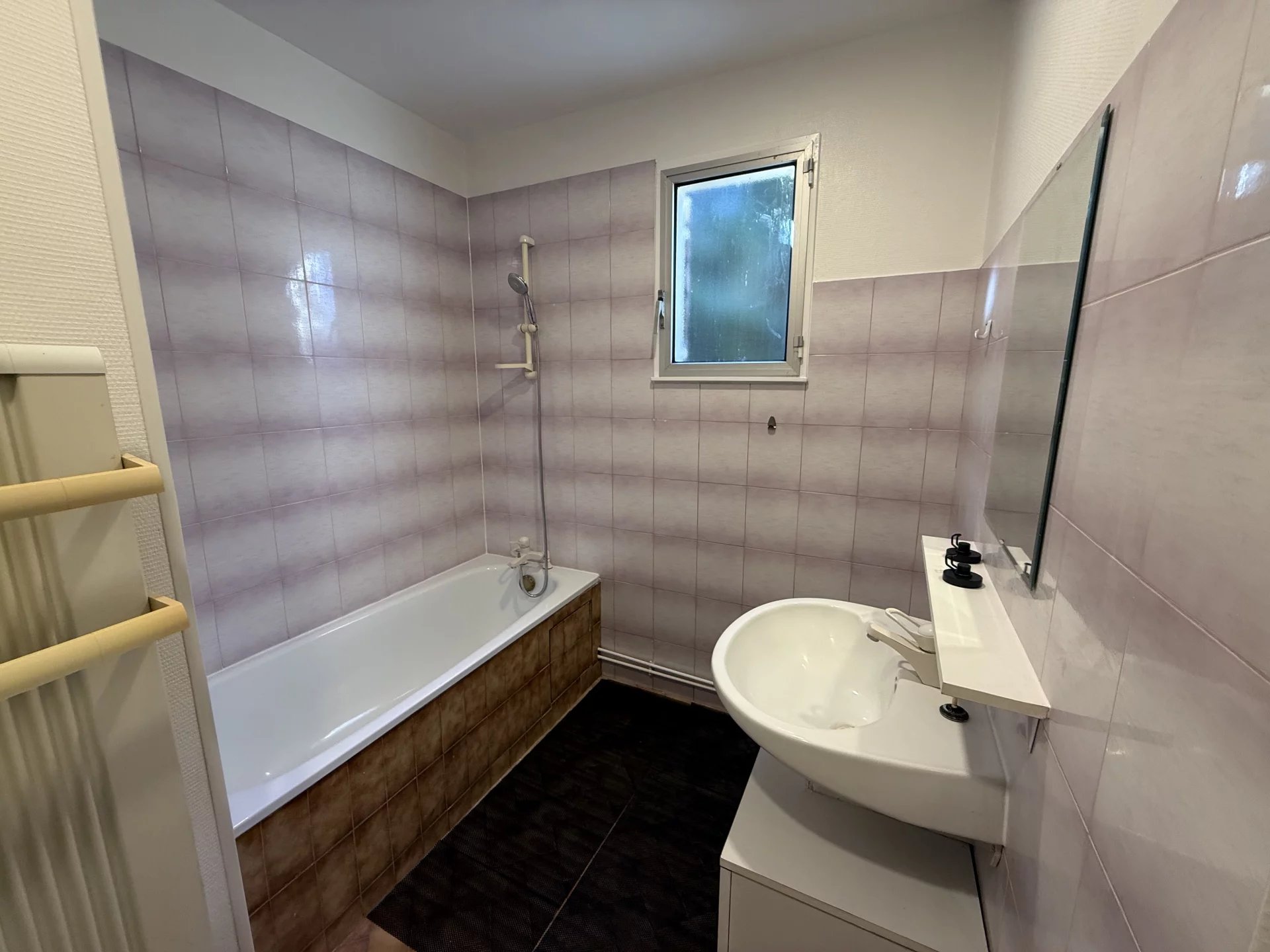 Vous trouverez également deux chambres avec rangements, une salle de bain ainsi qu’un WC séparé.