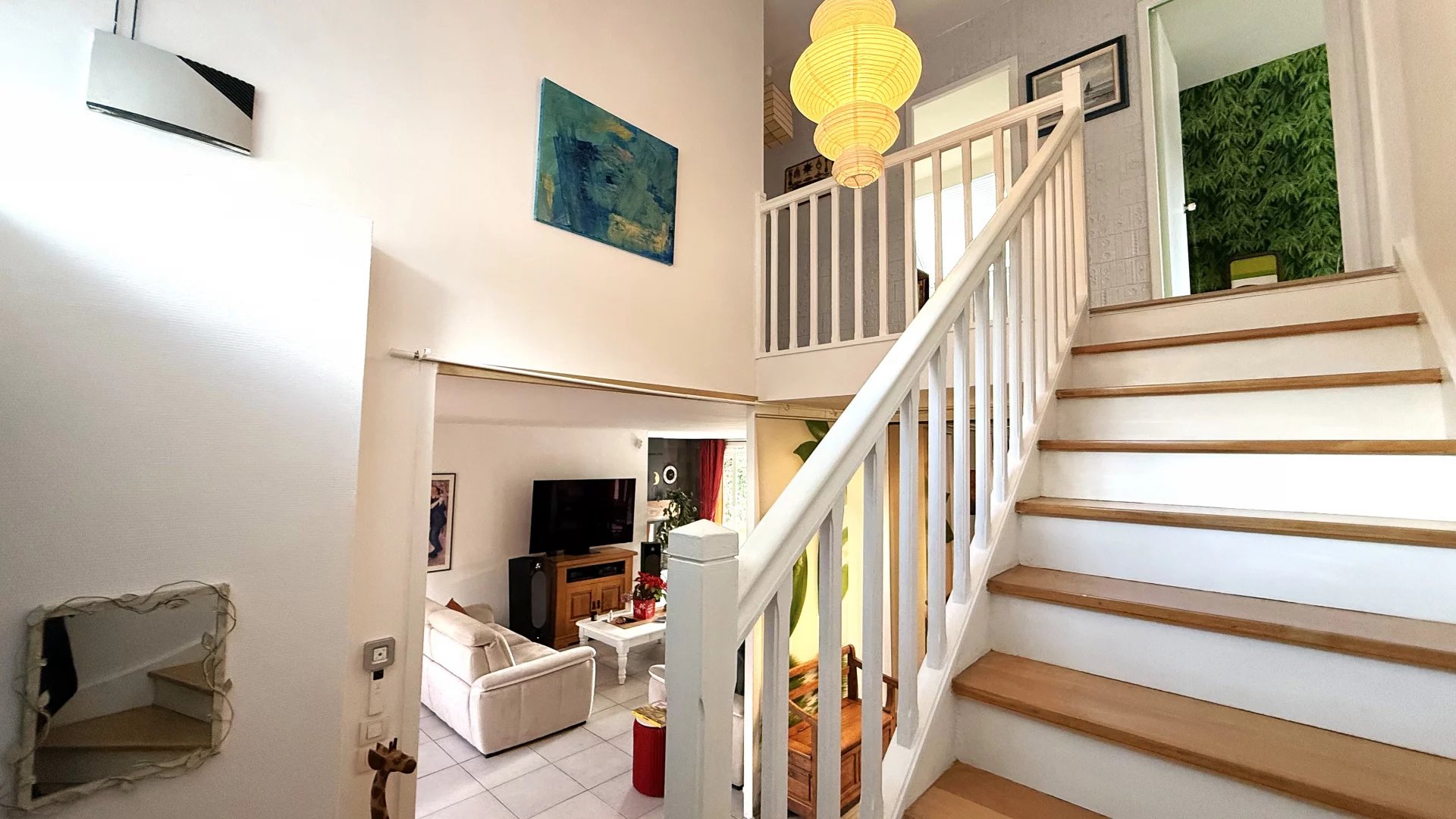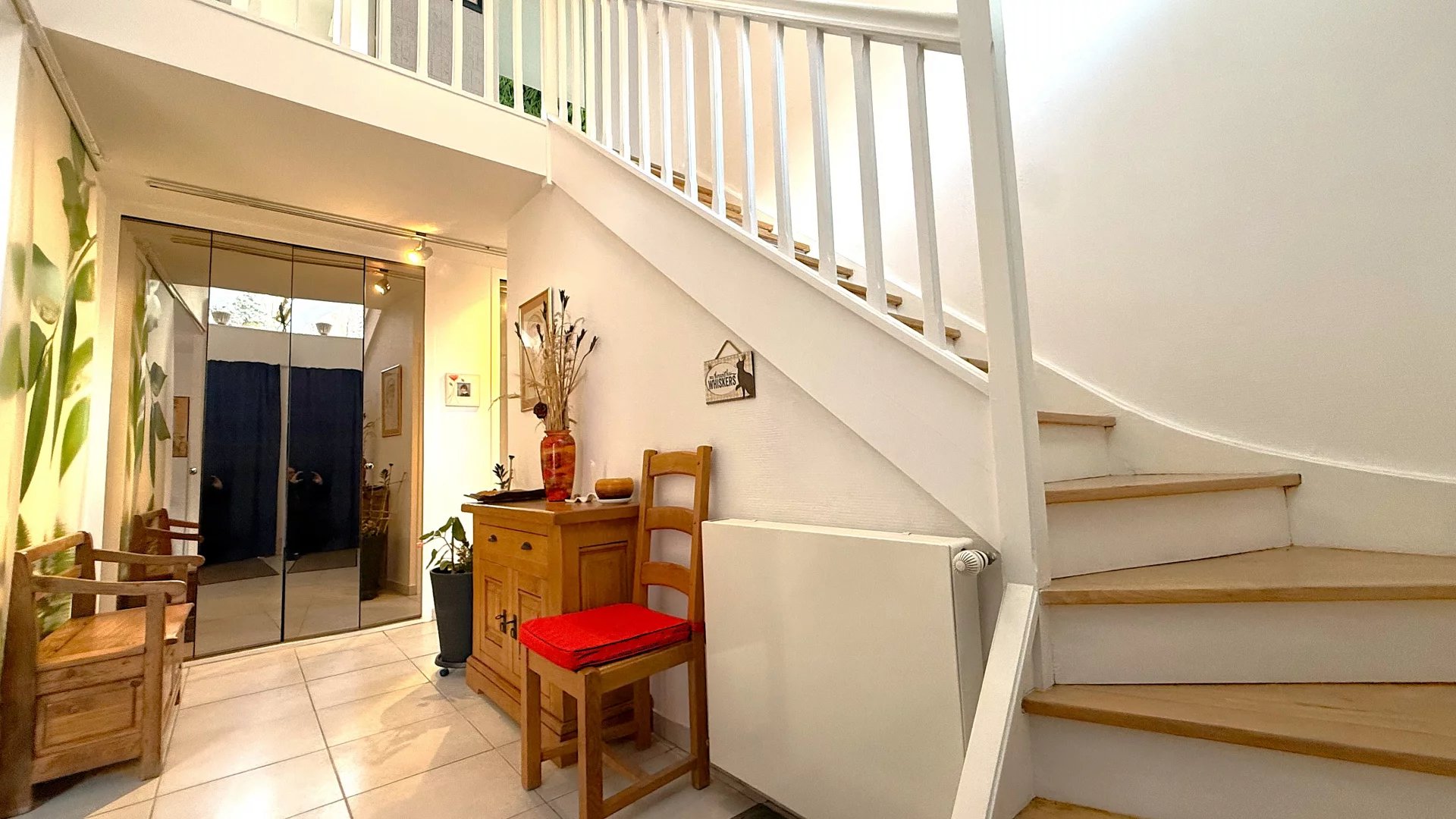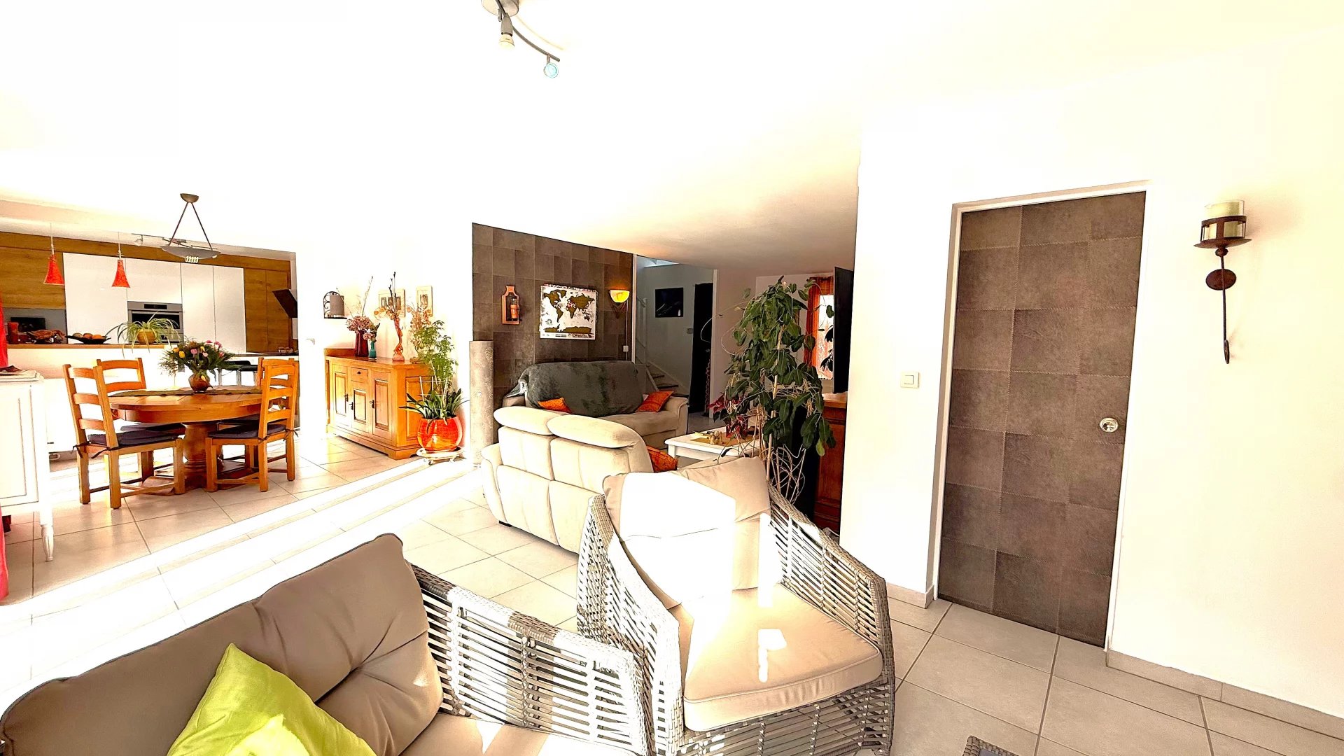 Le RDC est composée d'une entrée cathédrale donnant sur un triple séjour de 54 m² avec accès sur une terrasse de 50m² et son jardin avec grand abris de jardin sans vis-à-vis. .Une chambre, une SDD à l’italienne, un WC.