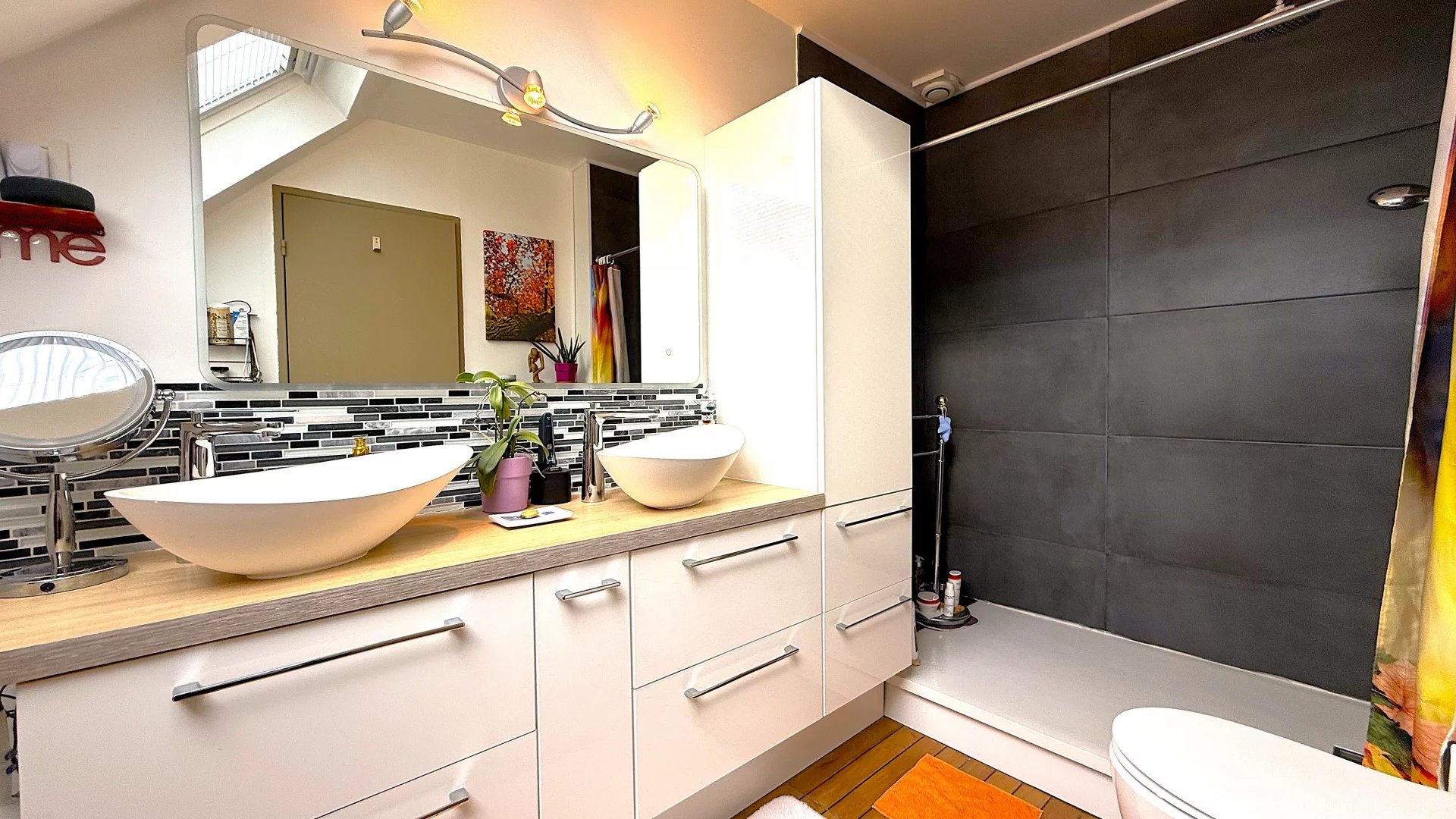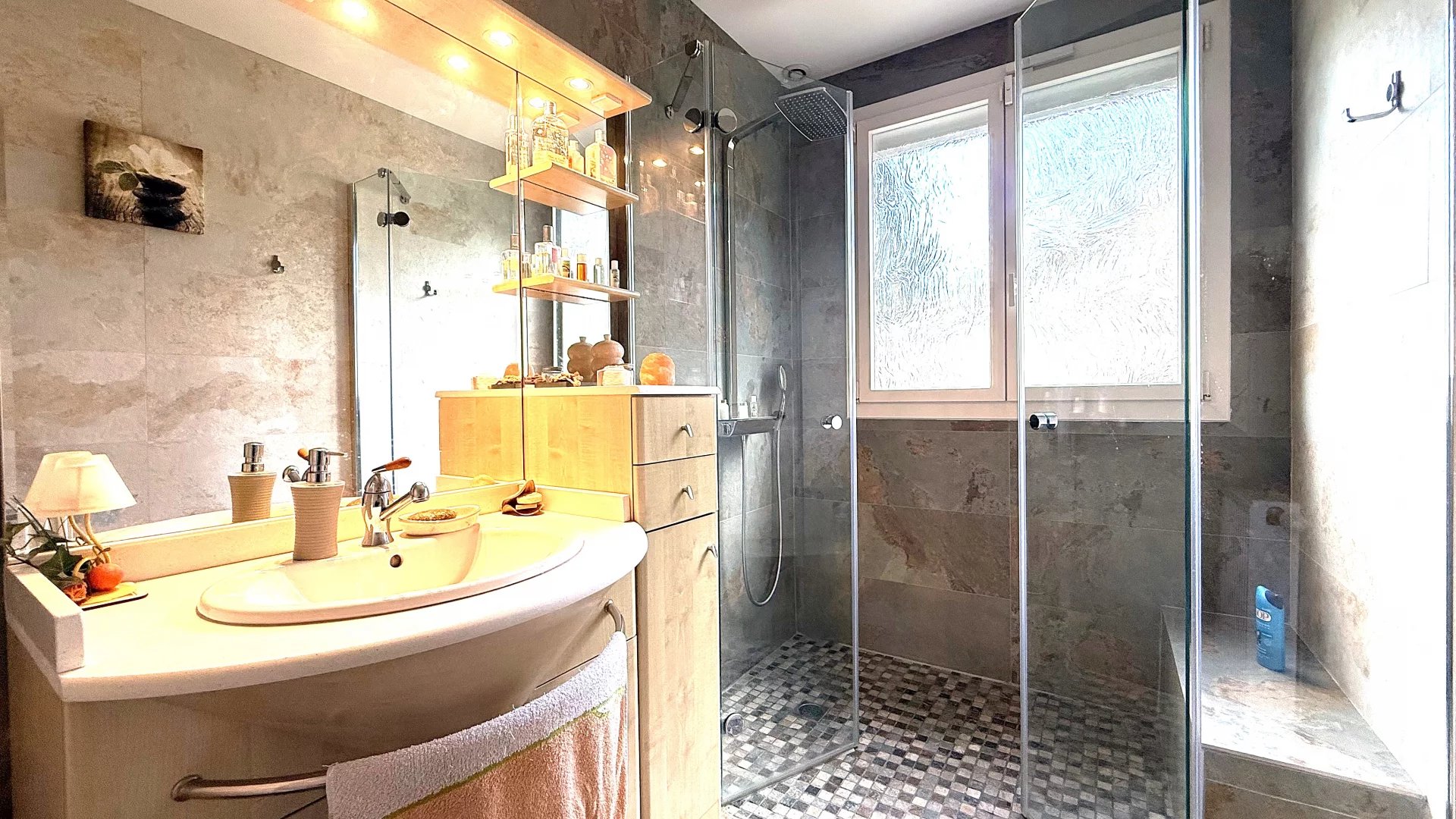 A l'étage se trouve 4 chambres dont une suite parentale de 33,09 m² + sa salle de bain et son dressing ainsi que de nombreux rangements, (placards miroirs coulissants) Une salle de bain moderne et son WC pour les 3 autres chambres.