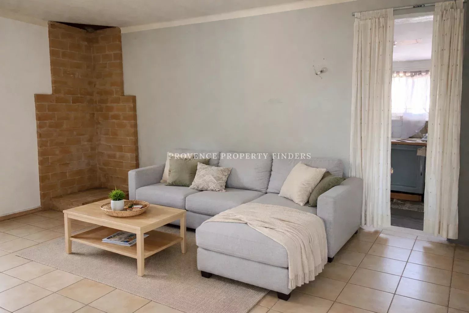 La maison offre une surface habitable d’environ 103 m². Au rez-de-chaussée, elle se compose d’un séjour avec portes ouvrant sur le jardin, d’une petite cuisine simple, d’une chambre et d’une buanderie. À l’étage, vous trouverez deux chambres supplémentaires ainsi qu’une salle de bains.