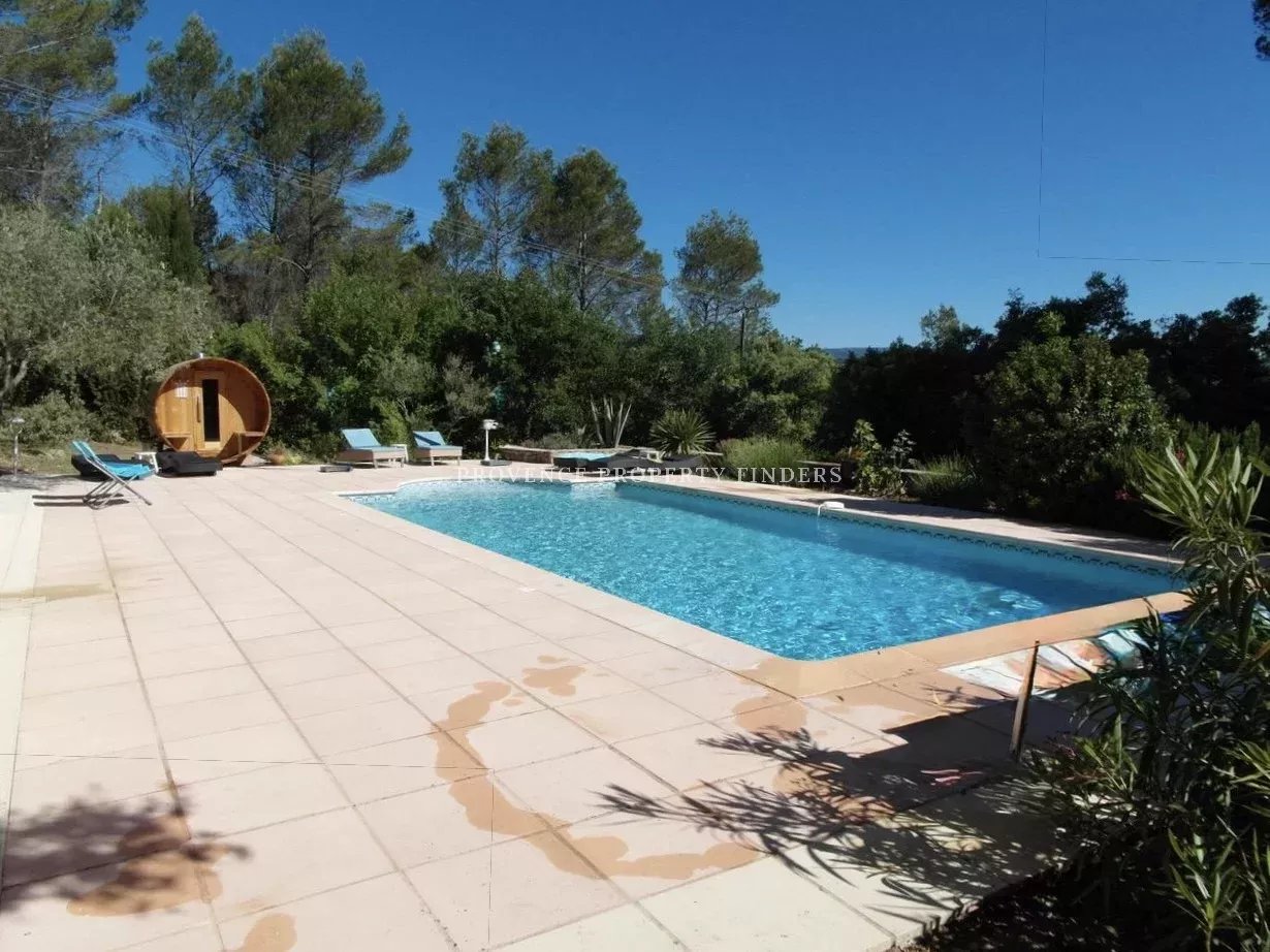 Située sur un magnifique terrain clos et joliment paysagé, sans vis-à-vis et offrant une belle vue dégagée sur les environs, cette charmante villa se trouve à moins de 2 km du centre de Lorgues.