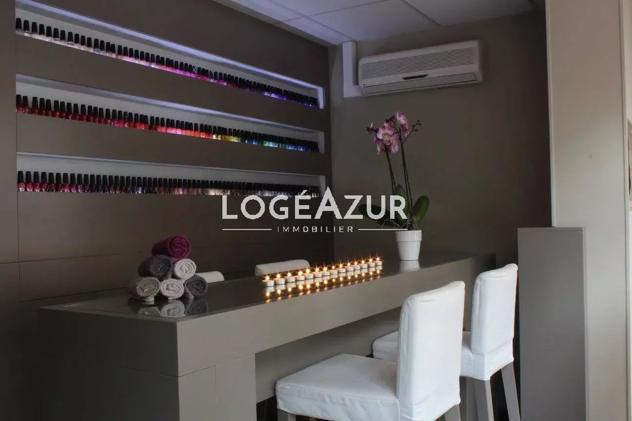 Fonds de Commerce à vendre Salon esthétique, Bien-être et Onglerie. Idéalement situé entre les plages de sable et la gare de Juan les Pins, il est composé d'un acceuil avec salle d'attente, d'une zone onglerie, de 3 cabines pour les soins, réserve, toilettes séparés avec point d'eau, d'une douche sensorielle et d'un HAMMAM. Entièrement climatisé. Il dispose d'une place de parking privé attenant au local.