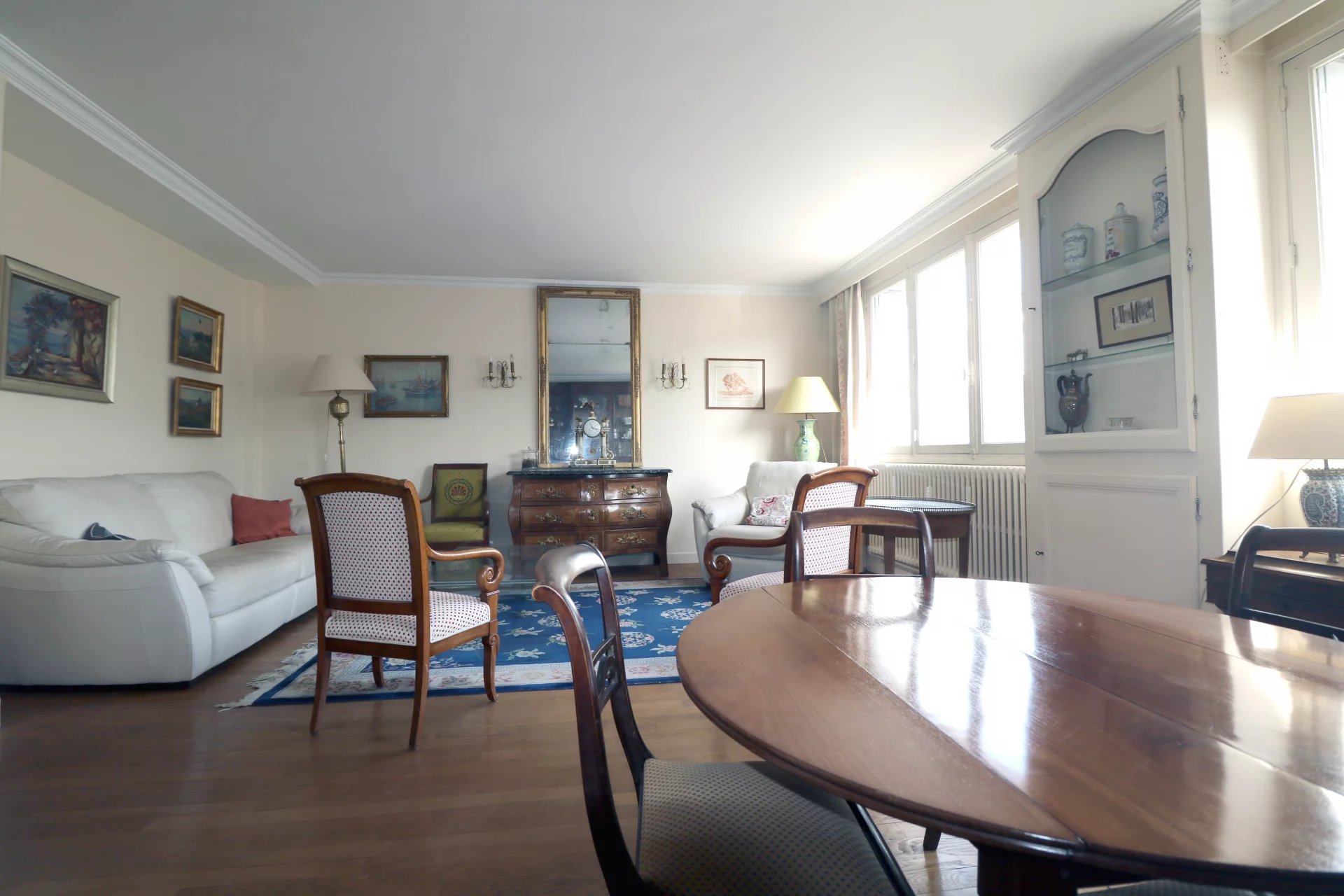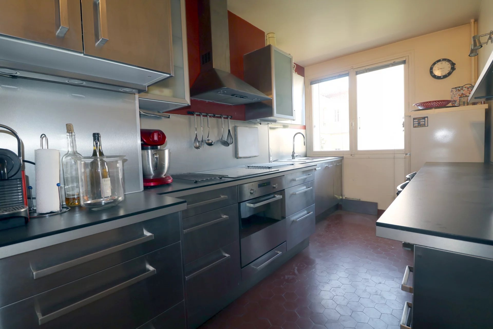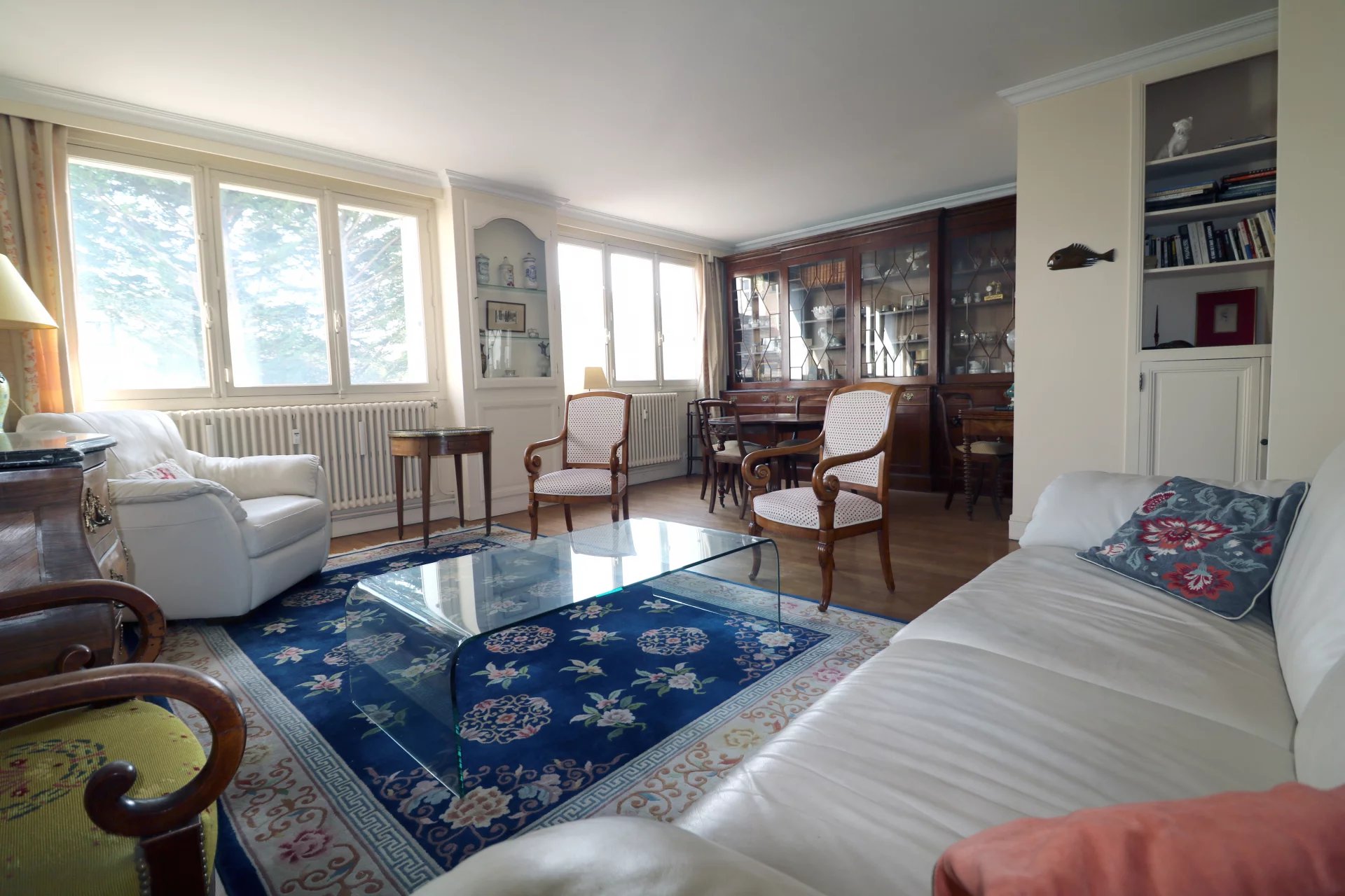 Situé au premier étage d'une résidence récente entretenue en pierre de taille avec ascenseur dans un environnement privilégié et parfaitement calme à proximité directe de la gare RD, du marché Notre Dame et du cœur économique. Un appartement 3 pièces de 72m² en très bonne état général offrant un ensoleillement de qualité a travers ses expositions traversantes Est et Ouest s/vis à vis sur jardin arboré. Entrée réception avec toilette ind., cuisine ind. aménagée et équipée, séjour parquet sur balcon exposé Ouest, une grande chambre expo Est (possibilité 2), salle de douche + coin buanderie. Garage/box fermé au sous sol et cave