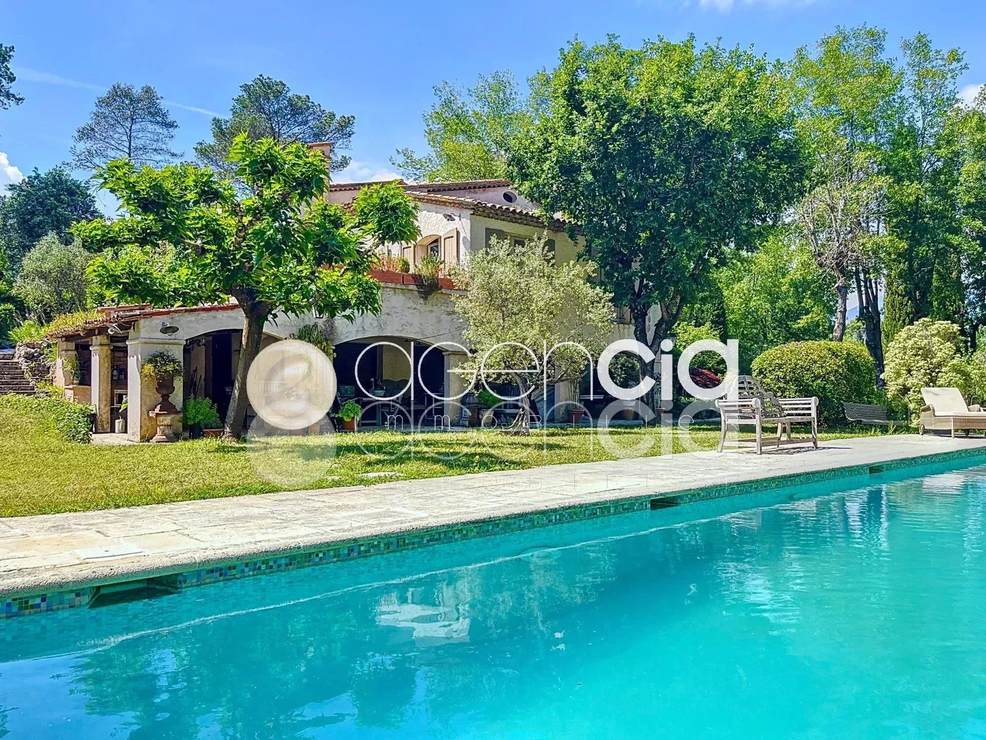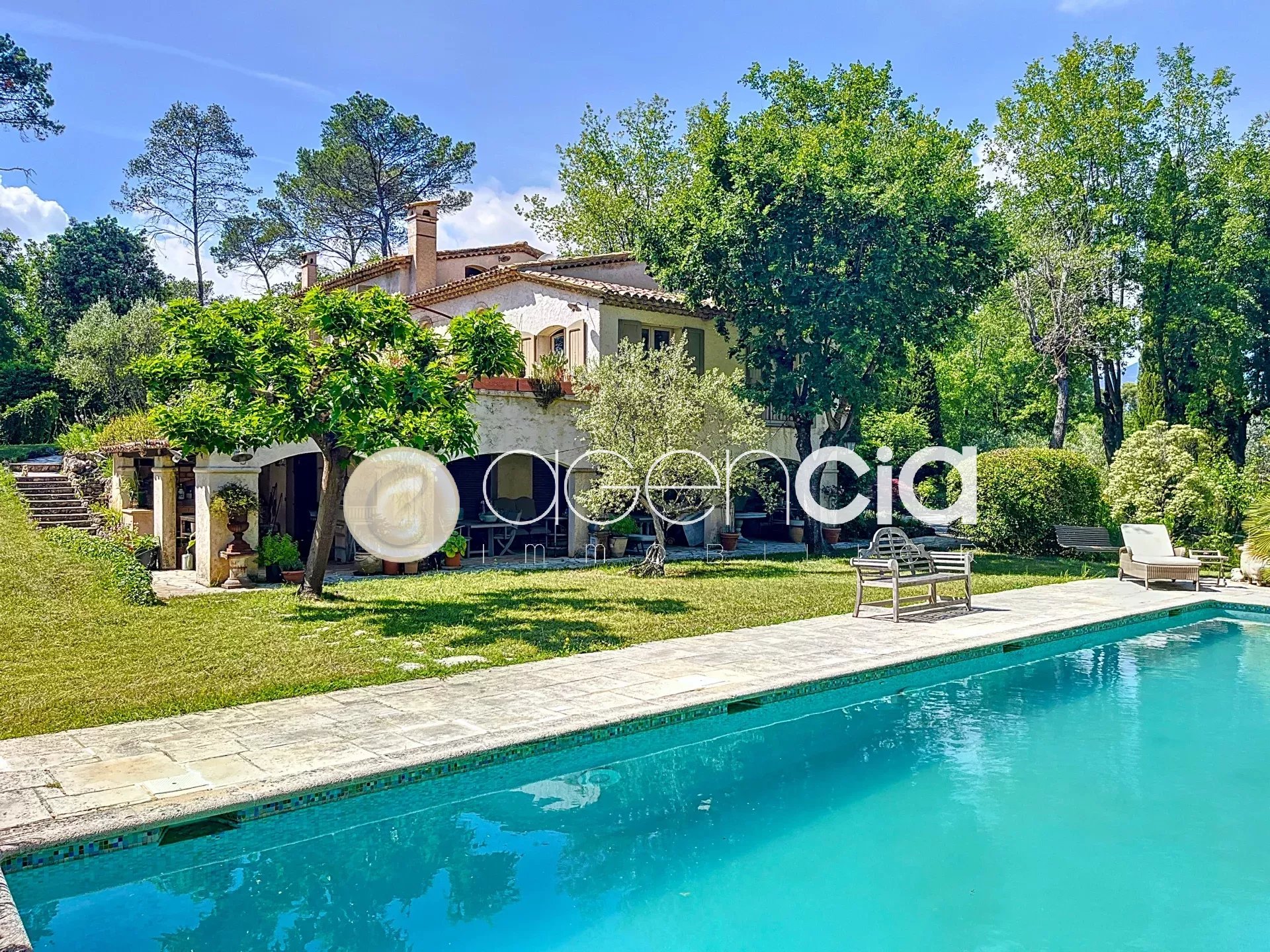 A VALBONNE, beau Domaine avec un grand terrain de 6900 m2 et une VILLA provençale de 300 m2, au village de Valbonne, comprenant 7 pièces dont 5 chambres, 60 m2 d'annexes supplémentaires, une PISCINE, située à quelques minutes du centre du village et du Golf. La Villa se trouve dans un environnement SANS AUCUN VIS-À-VIS et au CALME ABSOLU, profitant d'une exposition à 360°, sur un terrain plat et harmonieux, apaisant et arboré. Deux terrasses privatives de style Tropézien sont attenantes aux chambres. Sur le vaste JARDIN, une grande PISCINE traditionnelle de 17x6 et un Poolhouse avec cuisine d’été. Vous découvrirez au rez-de-jardin une entrée, un toilette indépendant, un bureau, une grande salle de réception ouvrant sur la terrasse et l’espace piscine, ainsi qu'un vaste sous-sol avec un espace buanderie. Au niveau du rez-de-jardin supérieur, une spacieuse cuisine, une salle à manger, un séjour/salon avec cheminée, trois chambres et deux salles de bains avec toilettes. À l'étage, une grande chambre de maître avec deux dressings et une salle de bains avec toilettes, ainsi qu'une autre chambre avec salle de bains et toilettes. POSSIBILITE DE SEPARER 1500 M2 DE TERRAIN POUR Y BATIR 80 M2 AU SOL AVEC ETAGE DE 80 M2 EGALEMENT. Une dépendance de 60 m2 est aménagée en studio et atelier, un carport pour voitures, un garage, et de nombreux emplacements de stationnement. Taxe foncière 2121 euros. Honoraires à la charge du vendeur. Les informations sur les risques auxquels ce bien est exposé sont disponibles sur le site Géorisques georisques.gouv.fr