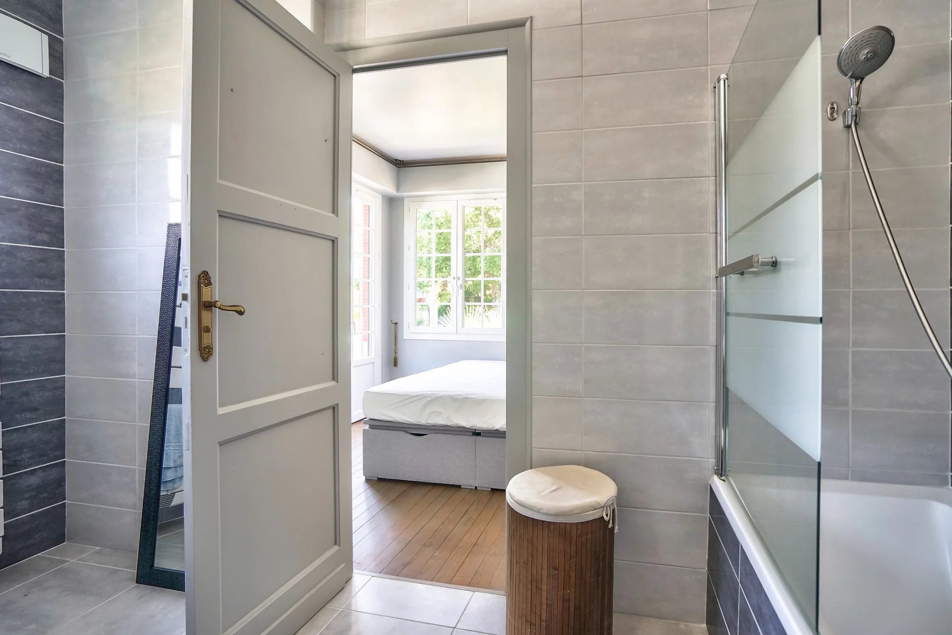 Située à équidistance entre la Basilique Notre Dame d'Arcachon et la plage Pereire, très belle maison de vacances avec jardin baignée de lumière sur 2 niveaux comprenant 6 pièces dont 3 chambres (possibilité d'en faire une 4e), un coin salon / salle à manger, un living avec possibilité d'installer un home cinema, une cuisine aménagé et équipée, une salle de bain ainsi qu'une salle de douche, toilettes séparées, buanderie, débarras, cave. Un parking extérieur complète ce bien.