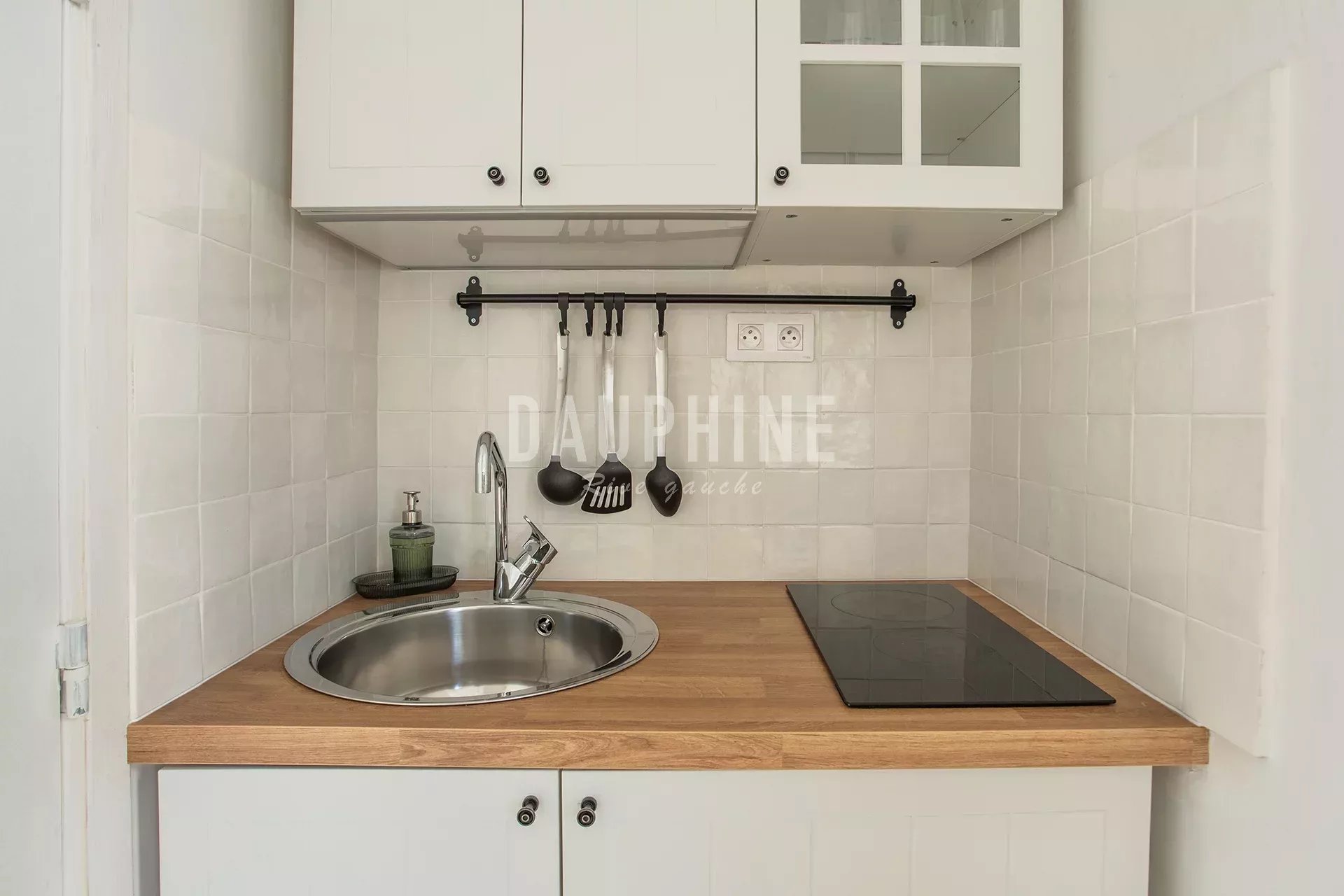RUE DE LA GRANDE CHAUMIÈRE / Situé dans un emplacement recherché du 6ᵉ arrondissement, à seulement 4 minutes à pied du Jardin du Luxembourg et à quelques mètres des transports, ce studio meublé d’environ 15 m², entièrement rénové par un architecte, séduit par la qualité de ses matériaux, son agencement optimisé et sa grande luminosité.