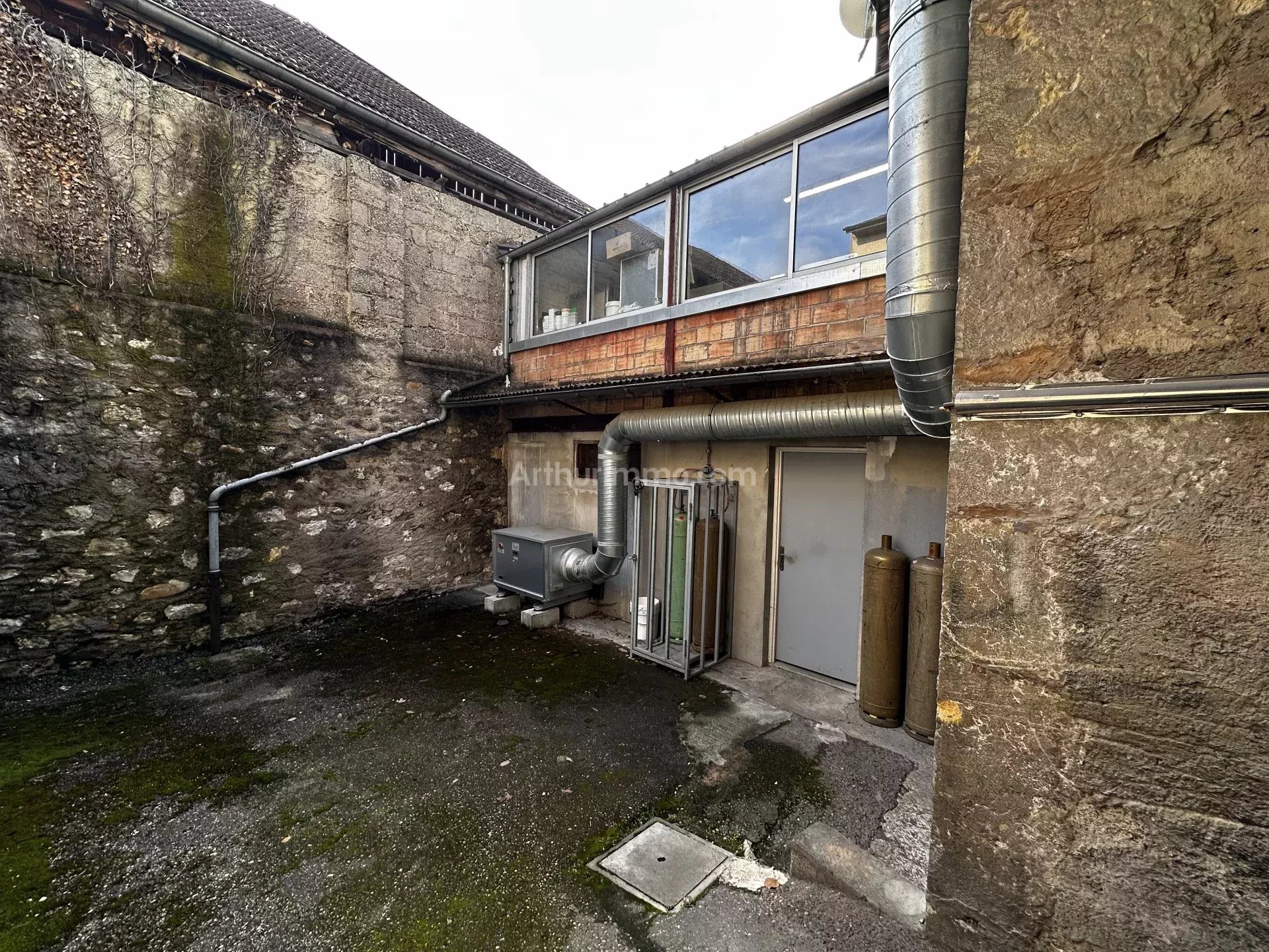 La copropriété sera faite pour la vente (2 lots seulement). Coté copropriété : toit en état d'usure normale, crépis et avant-toit en état d'usure avancée. Peinture vieillissante de la porte en bois pour accéder au sous-sol.