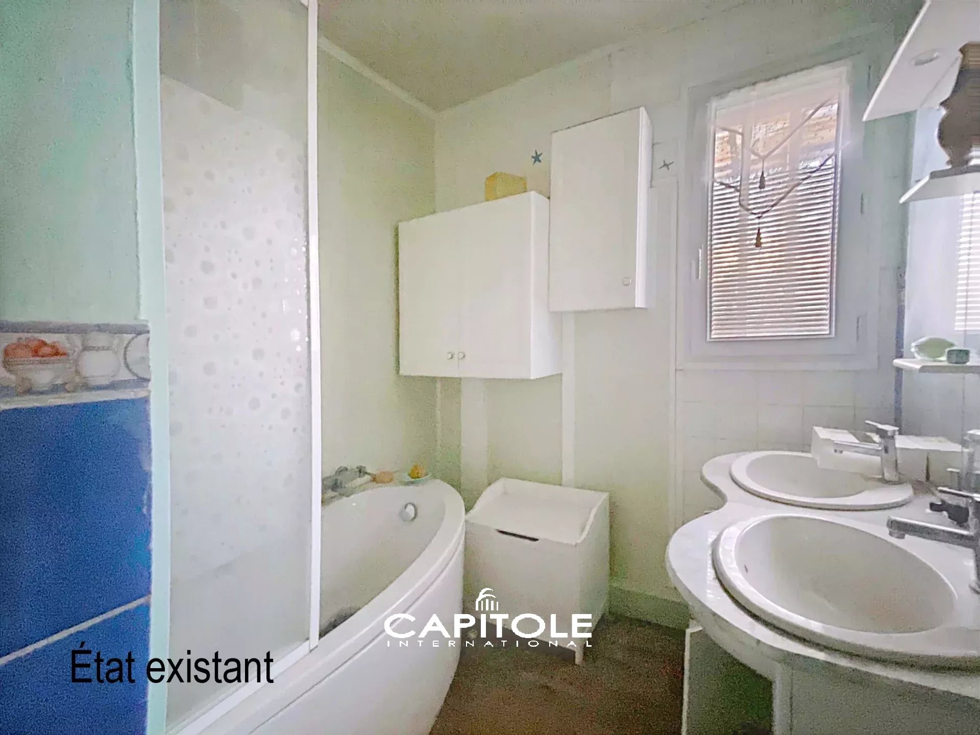 La première villa, actuellement divisée en deux appartements, offre de beaux volumes, une mezzanine, une cheminée et des espaces extérieurs ensoleillés. Elle peut être facilement réunifiée pour redevenir une agréable maison familiale.