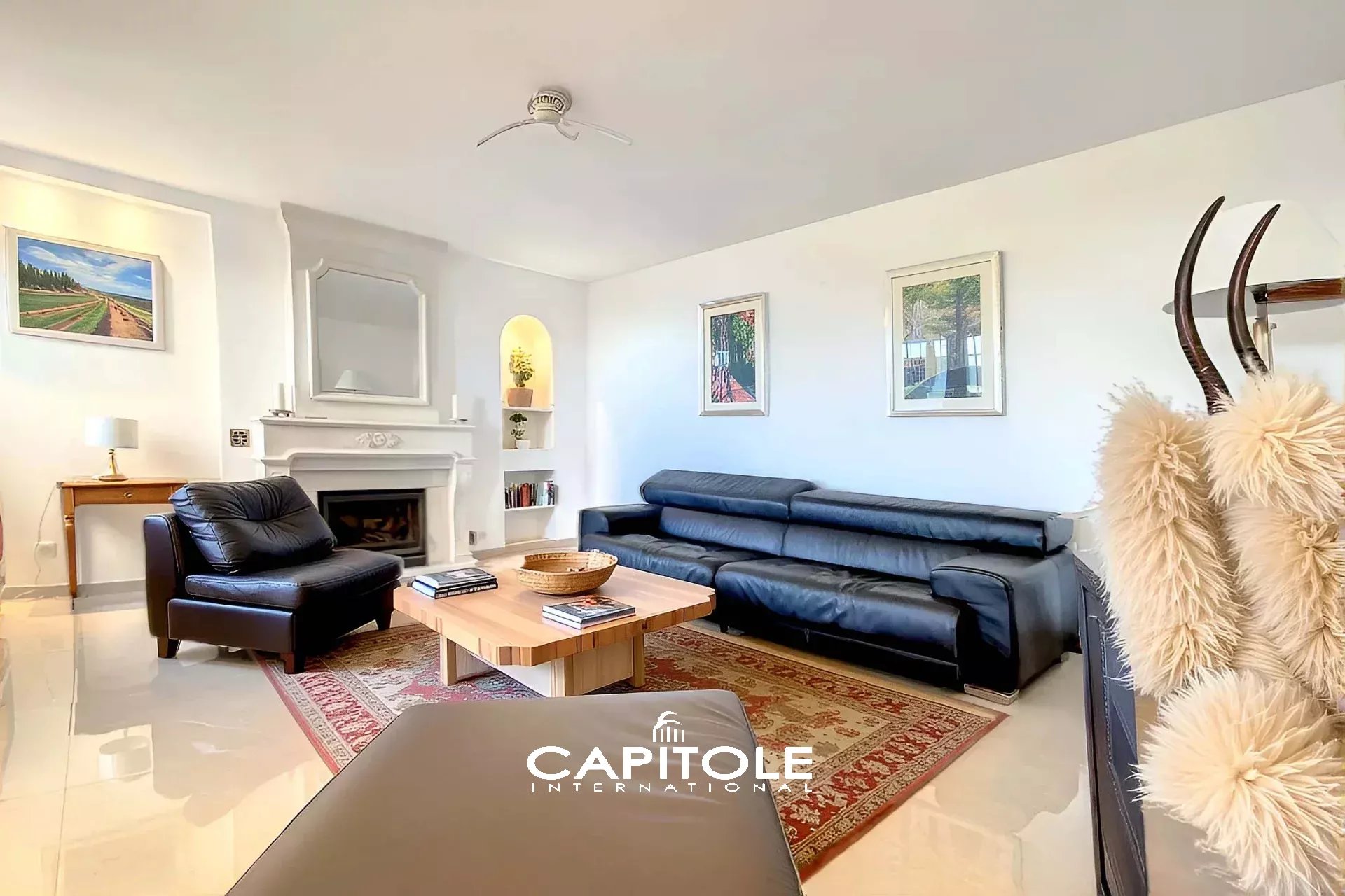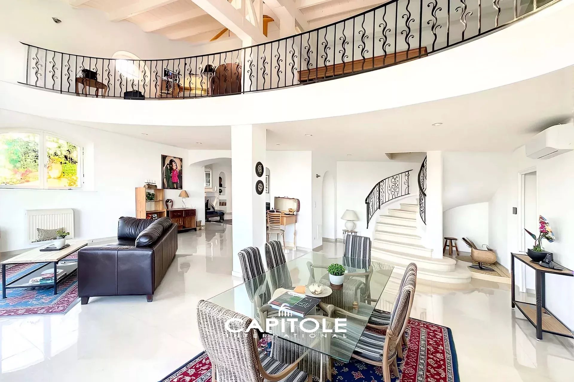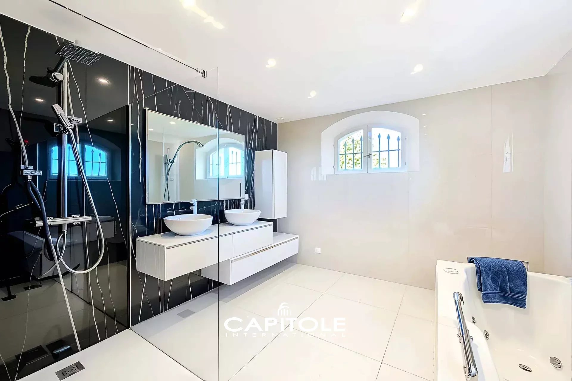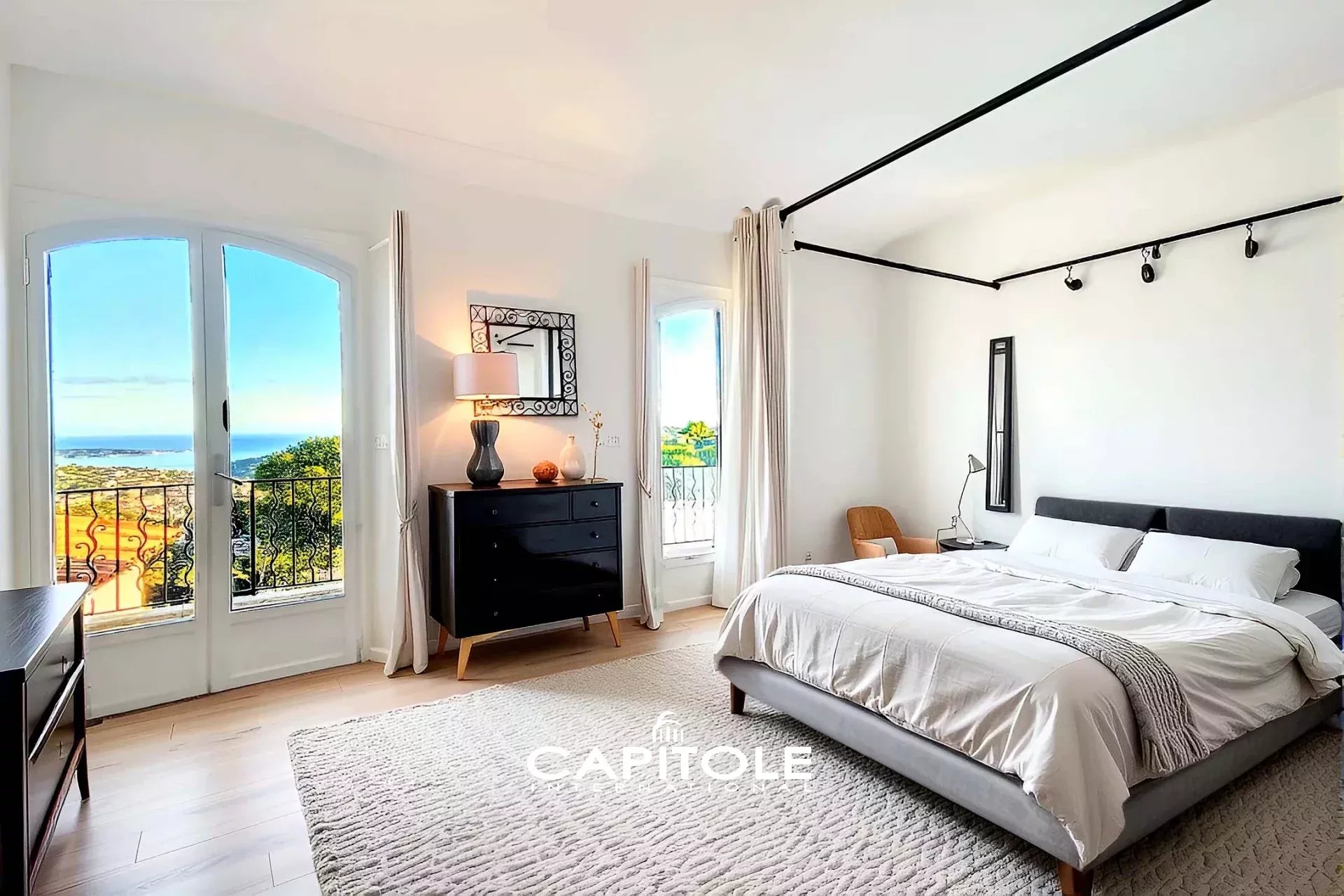 À seulement 10 minutes de Cannes et à proximité de Sophia Antipolis, cette somptueuse villa de 294 m² domine le paysage et offre une vue mer imprenable. En position privilégiée, au calme absolu, sans vis-à-vis et exposée plein sud, elle s’épanouit au cœur d’un terrain paysagé avec piscine, la villa séduit par la noblesse de ses matériaux et la qualité de ses prestations.