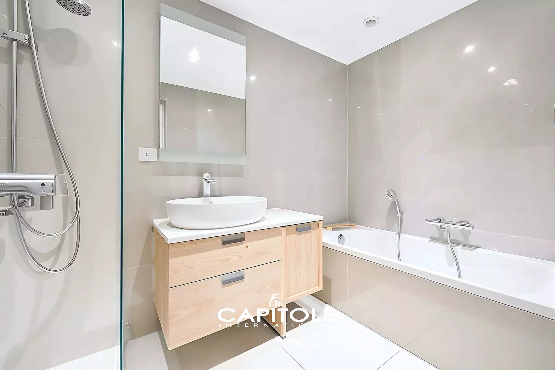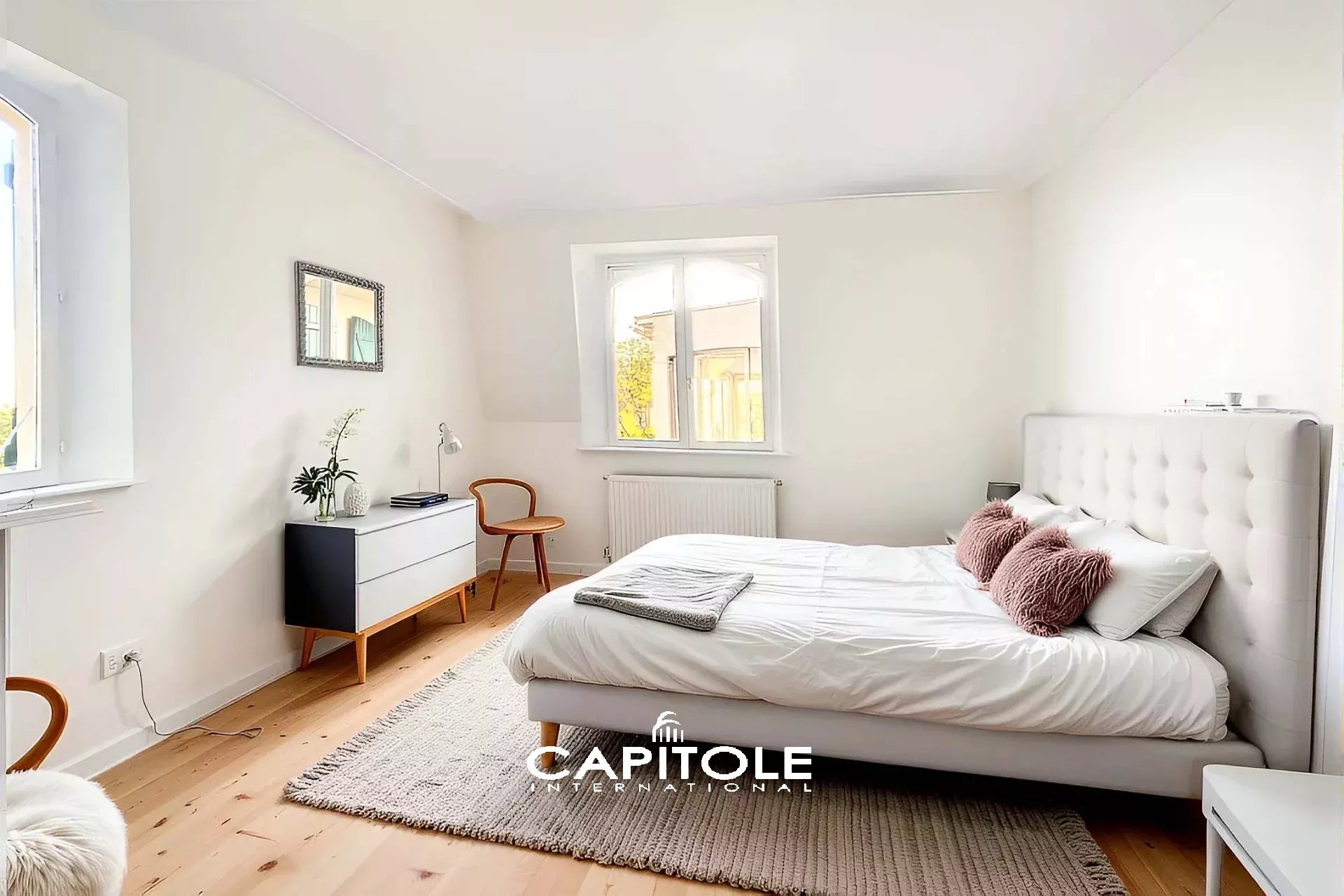 Au niveau jardin, les volumes généreux se prolongent vers un salon avec cheminée, une salle à manger ouvrant sur une véranda lumineuse de 24 m², et une cuisine contemporaine équipée avec îlot central. Trois chambres supplémentaires, deux salles de bains, un sauna et une buanderie complètent cet espace de vie raffiné et convivial.