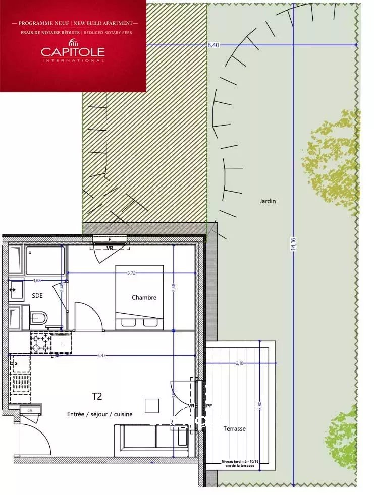 Découvrez ce 2 pièces neuf de 32 m² en rez de jardin d'environ 90m².