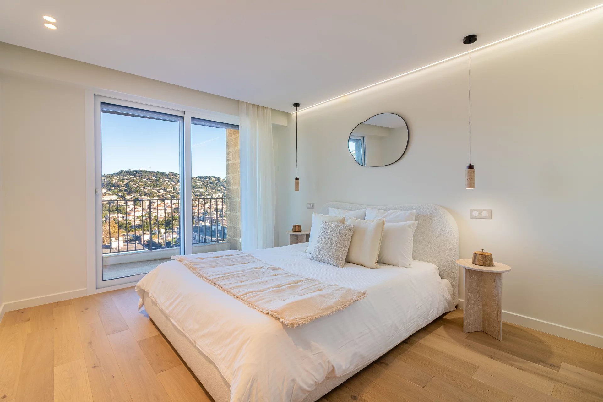 Implanté au 6ᵉ et avant-dernier étage, le bien bénéficie d’une vue dégagée exceptionnelle sur la mer et le massif de l’Estérel, ainsi que d’une triple exposition Est – Nord – Ouest, garantissant une luminosité optimale tout au long de la journée.