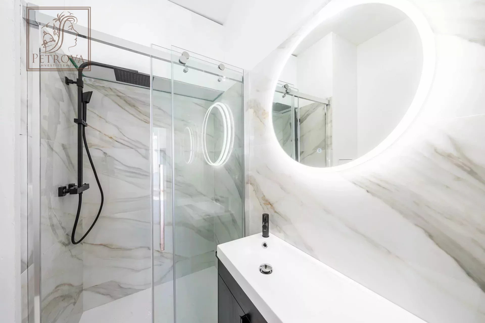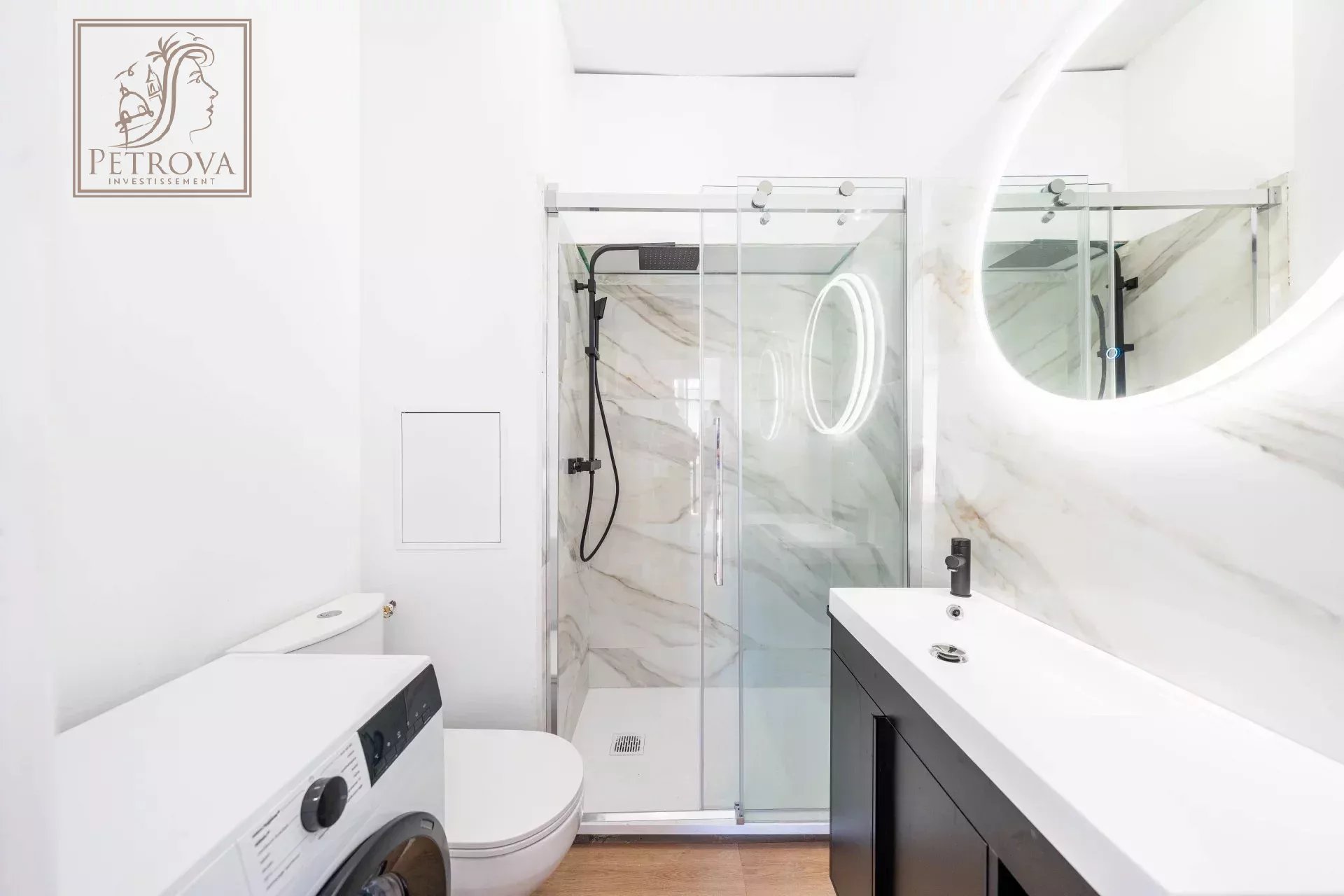 * Une salle d’eau contemporaine avec WC et lave-linge neuf.