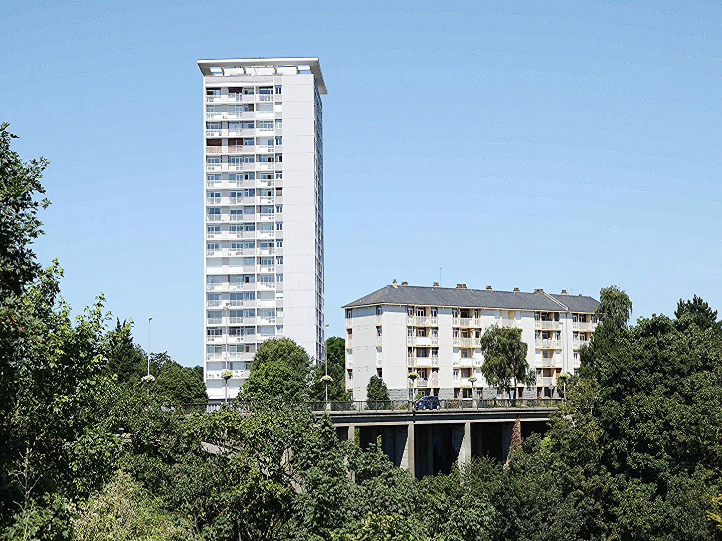 A VENDRE, SAINT-BRIEUC, 500m du centre, appartement T4 d'environ 74m2 au 14ème étage avec ascenseur d'une résidence des années 70, VUE PANORAMIQUE SUR ST BRIEUC ET VALLEE, comprenant : entrée , séjour ouvrant sur balcon, cuisine aménagée ouvrant sur balcon, dégagement avec placards, 3 chambres dont 2 sur balcon, salle de bain, wc, cave en sous-sol, parking extérieur commun, POUR INVESTISSEUR , VENDU OCCUPÉ ( BAIL EN COURS), LUMINEUX, PROCHE COMMODITES. (6.50 % honoraires TTC à la charge de l'acquéreur.) Copropriété de 157 lots - dont 78 lots habitation. Charges annuelles : 2904 euros.