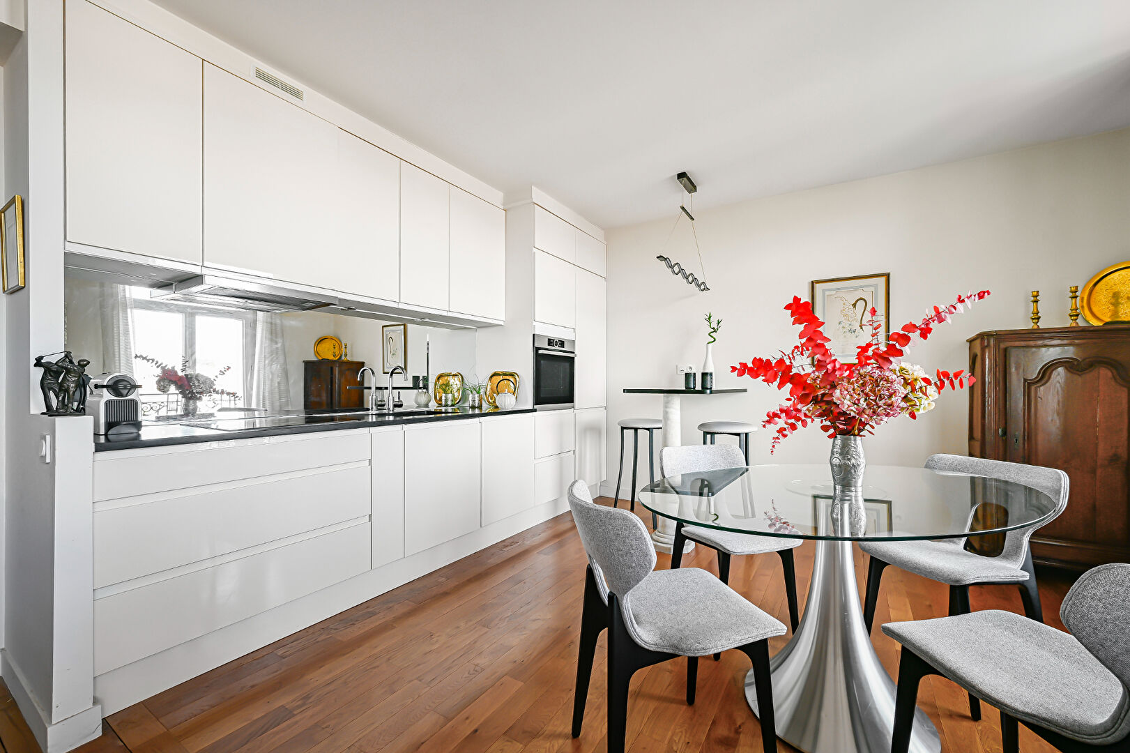 Emplacement de choix pour ce magnifique appartement 3 pièces de 74,77 m² entièrement refait à neuf offrant une vue exceptionnelle sur la Tour Eiffel et La Défense sans aucun vis-à-vis ce, au 4éme étage d'un bel immeuble ancien de standing. Il comporte une entrée avec couloir, un séjour lumineux, une cuisine moderne ouverte sur la salle à manger, deux chambres indépendantes, une salle d'eau contemporaine et un WC séparé. L'appartement bénéficie d'un agencement parfaitement optimisé, alliant charme de l'ancien (hauteur sous plafond, parquet ...) et confort moderne. Une grande cave en sous-sol complète ce bien. Idéalement situé, à proximité du RER, de l'Observatoire, des commerces et du centre-ville, ce bien rare offre un cadre de vie agréable, entre calme, commodités et vue dégagée sur Paris.