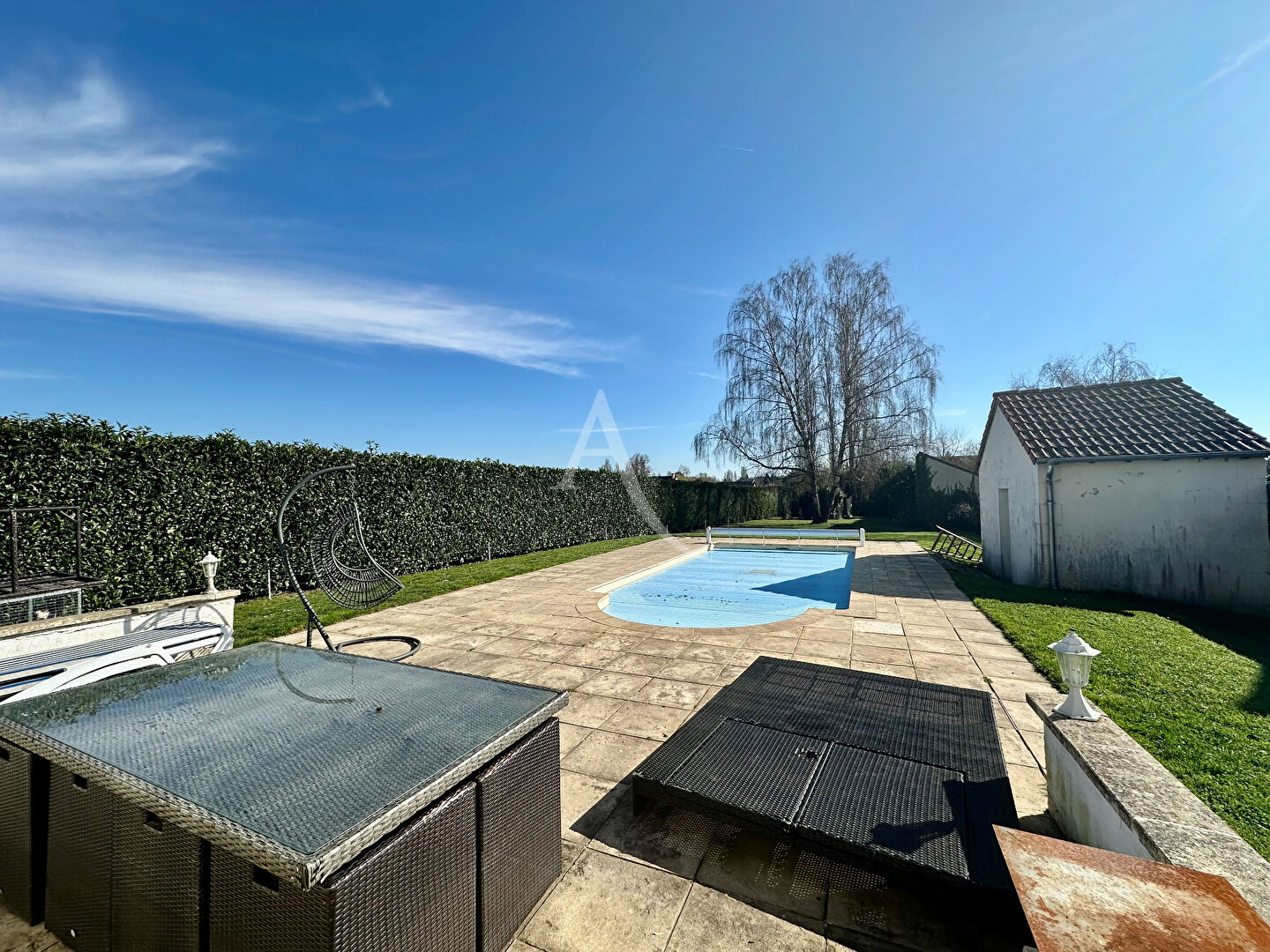 Située dans un environnement calme et recherché de Trainou, cette charmante maison offre un cadre de vie idéal, alliant confort moderne et proximité des commodités. -Au rez-de-chaussée, vous découvrirez une agréable pièce de vie lumineuse avec salon/séjour équipé d'un poêle à granulés, ouverte sur une cuisine entièrement aménagée et équipée.Deux belles chambres, une salle d'eau rénovée avec goût en 2022 (sous facture) et un WC indépendant complètent ce niveau. -A l'étage, un palier dessert deux autres chambres ainsi qu'une seconde salle d'eau avec WC suspendu, offrant un espace nuit confortable et fonctionnel. -Côté équipements : adoucisseur d'eau, chauffage électrique, poêle à granulés, portail électrique. -A l'extérieur, profitez d'une vaste terrasse d'environ 100 m², parfaite pour vos moments de détente, donnant sur une piscine cressée, couverte, avec dispositif de sécurité et local technique. -Le tout est édifié sur un magnifique terrain arboré et entièrement clos, avec un poulailler. Atout majeur : la maison est idéalement située à proximité immédiate des commodités du centre-bourg (médecin, pharmacie, coiffeur, bar, restaurant, boulangerie) ainsi que des transports REMI, facilitant vos déplacements au quotidien. Une maison clé en main, prête à accueillir votre famille dans un cadre serein. Coup de coeur assuré ! 'Les informations sur les risques auxquels ce bien est exposé sont disponibles sur le site Géorisques : www. georisques. gouv. fr'