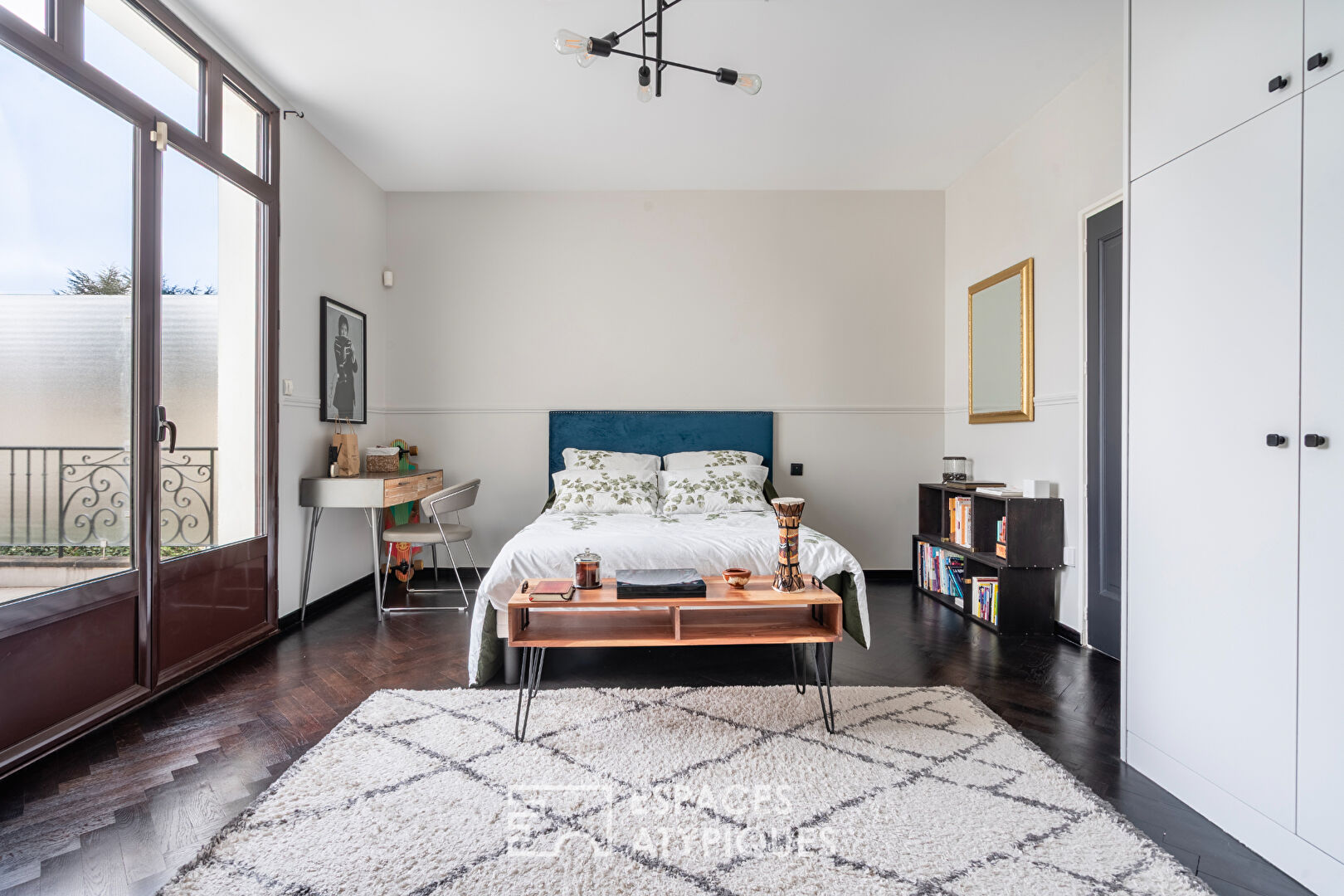 A quelques pas des bords de Marne, au coeur de La Varenne Saint-Hilaire, cette propriété contemporaine d'environ 350 m² habitables s'inscrit dans un environnement résidentiel recherché. Derrière une architecture aux lignes sobres, la maison révèle une écriture intérieure tournée vers la lumière et la fluidité des volumes. Appréciée pour son équilibre entre nature et vie de quartier, Saint-Maur-des-Fossés séduit par une qualité de vie rare aux portes de Paris. La proximité du RER permet de rejoindre rapidement la capitale, tandis que la présence d'établissements scolaires réputés renforce l'attrait familial du secteur. Ici, le rythme reste paisible : rues résidentielles, promenades le long de la Marne et une atmosphère préservée où le calme demeure intact. L'entrée, largement ouverte, laisse apparaître un escalier aérien et une coupole qui accompagne les variations naturelles du jour. La circulation se fait sans rupture, dans un équilibre subtil entre perspectives généreuses et espaces plus intimistes. La pièce de vie principale, d'environ 80 m², s'étire vers l'extérieur grâce à de larges baies vitrées. Salon, salle à manger et cuisine contemporaine dialoguent dans une continuité naturelle, prolongée par une terrasse et un jardin aux accents méditerranéens. Les essences végétales, choisies avec retenue, composent une atmosphère apaisante. Un bureau, une suite avec salle de douche et un vestiaire invités complètent ce premier niveau. A l'étage, la suite parentale dispose d'un dressing, d'une salle de bain et d'une terrasse privative de 21 m². Trois chambres supplémentaires, chacune ouverte sur un extérieur, bénéficient d'une salle de bain ou d'une salle de douche, offrant une organisation fluide et familiale. A l'intérieur, la palette chromatique joue avec des bruns profonds, des nuances claires et quelques touches plus vibrantes, révélant la matière sans jamais l'imposer. A l'extérieur, une terrasse en bois d'environ 190 m², préservée des regards, prolonge l'expérience dans une ambiance confidentielle. Sous-sol et garage complètent l'ensemble. Une adresse contemporaine où architecture, lumière et discrétion dessinent une élégance naturelle propre à La Varenne. RER A St Maur Champigny : 7 min à pied Centre ville et commerces : 7 min à pied Marché de la Varenne : 15 min à pied CLASSE ÉNERGIE : C CLASSE CLIMAT : C. Prix moyen des énergies indexés sur les années 2021,2022,2023 : 3130 euros et 4290 euros. Les informations sur les risques auxquels ce bien est exposé sont disponibles sur le site Géorisques : https://www.georisques.gouv.fr Contact : Mélanie Famuliak 07 69 44 20 88 - EI - Agent Commercial - RSAC: 907 896 245 Bobigny Mélanie FAMULIAK (EI) Agent Commercial - Numéro RSAC : 907 896 245 - Bobigny.