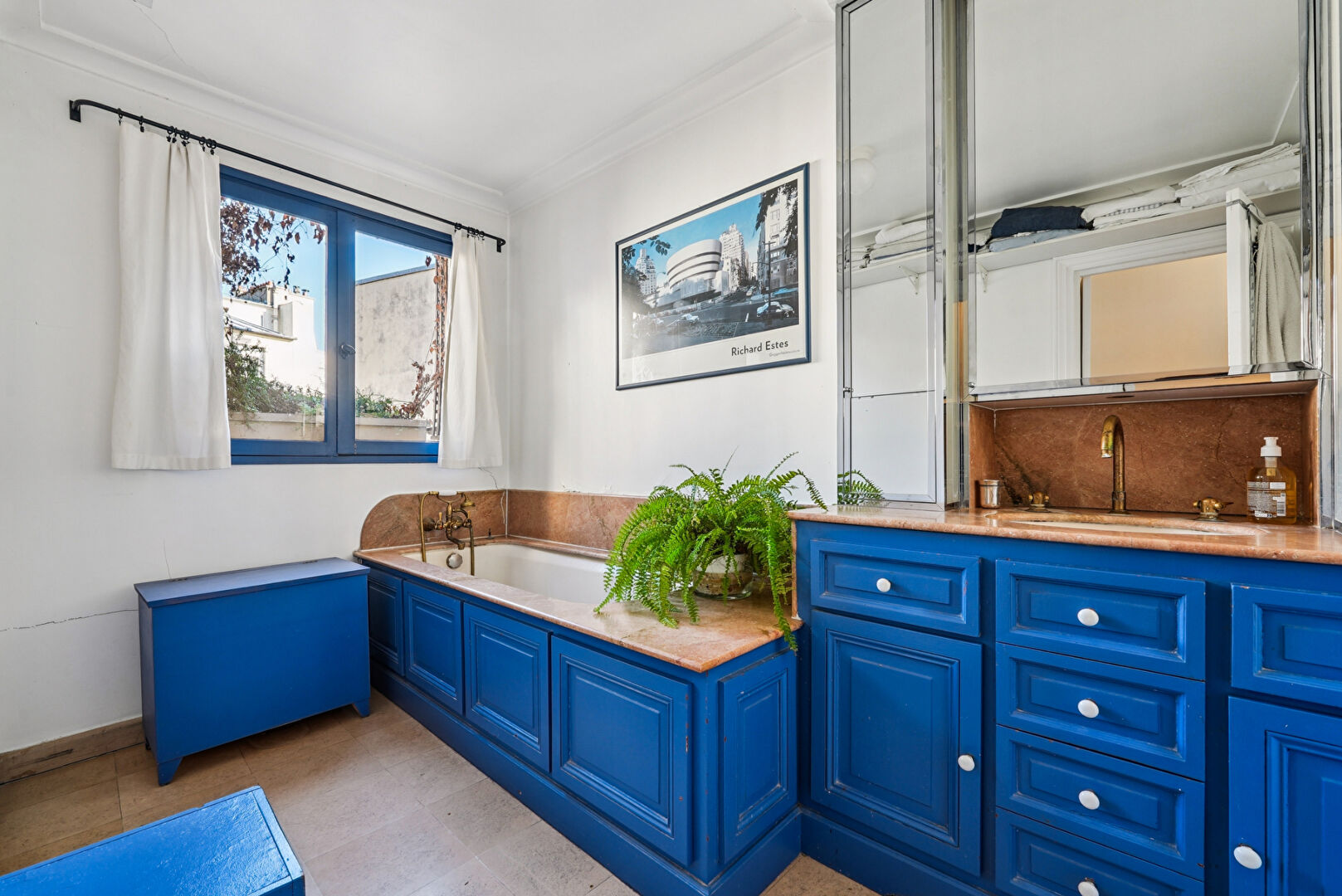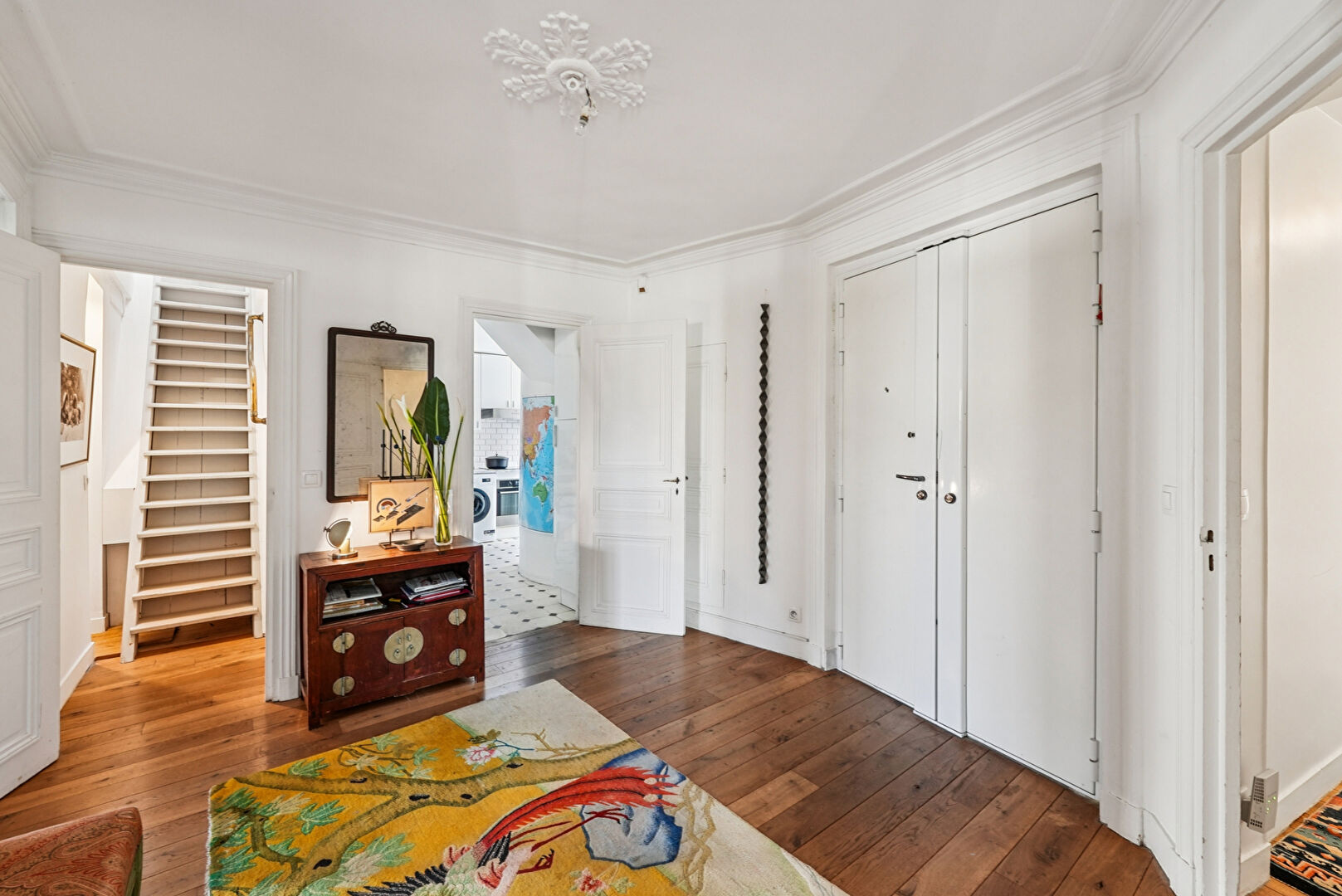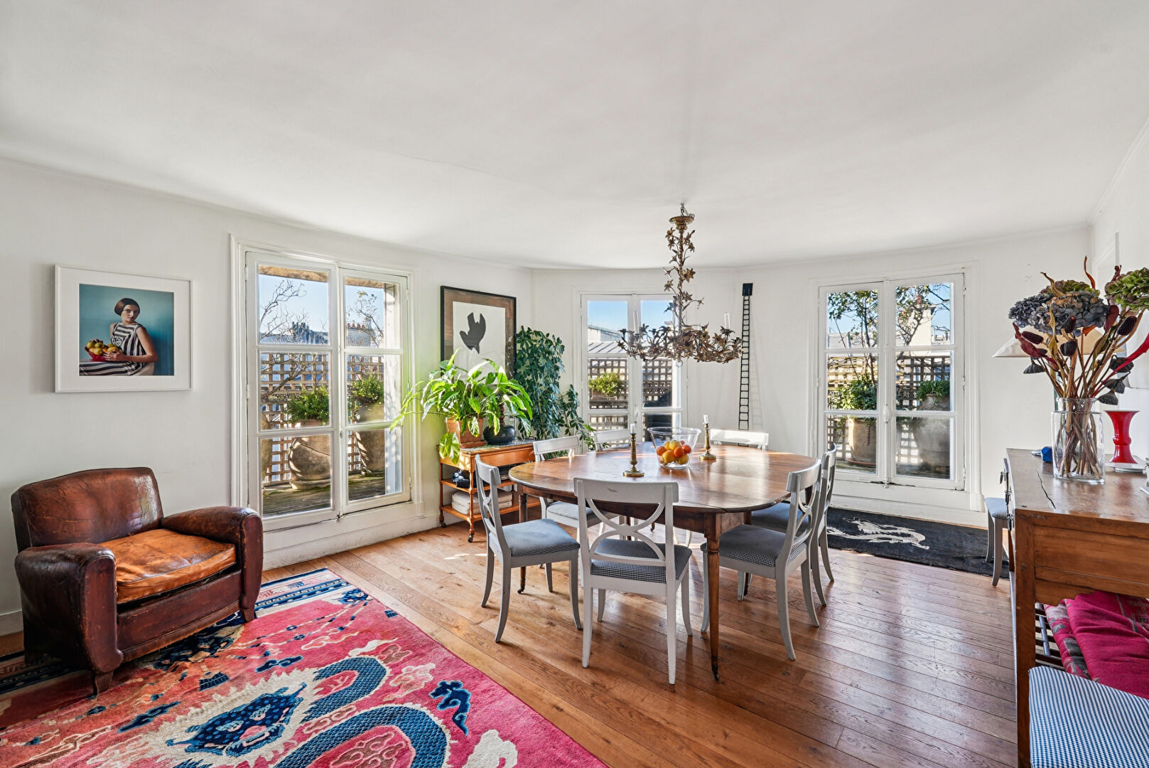 Paris IX - Rue d'Aumale - Duplex dernier étage avec balcon de 25m2 Dans l'une des rues les plus prisées du 9e arrondissement, découvrez ce duplex d'exception d'une superficie de 147,13m2 loi carrez niché au dernier étage d'un immeuble ancien édifié en 1840 et parfaitement entretenu. Accessible par ascenseur et seul sur le palier, ce bien bénéficie d'un calme absolu et est baigné de lumière grâce à ses expositions Sud et Ouest, son absence de vis-à-vis et ses vues dégagées sur les toits de Paris. Avec un plan en étoile, il se compose d'une belle entrée, d'un salon avec cheminée fonctionnelle, d'une salle à manger très lumineuse avec trois grandes fenêtres, d'une cuisine indépendante, de deux chambres, d'une salle de bains et de toilettes invités. Au deuxième niveau et directement relié par une escalier intérieur se trouve un studio indépendant avec une chambre, un séjour et sa propre salle d'eau. Gardienne à demeure, une grande cave et un grenier complètent cette offre. En sus du prix, au sixième étage et accessible par l'escalier de service se trouve un appartement de 16m2 et une chambre de service pour un prix de 200 000 euros. Copropriété de 18 lots - dont 18 lots habitation. (Pas de procédure en cours). Charges annuelles : 12000 euros.