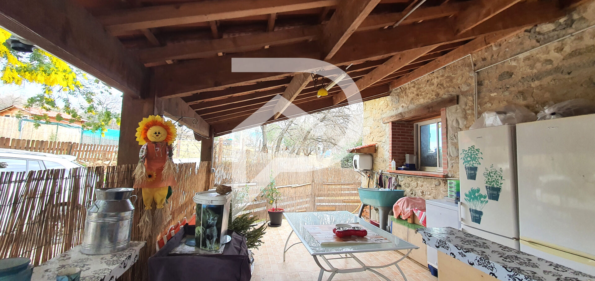 Au coeur d'un environnement rural et paisible, découvrez cette partie de Mas en trois faces, entourée de nature et implantée sur un ensemble de parcelles totalisant 5 464 m² à caractère agricole. La maison développe un agencement chaleureux et fonctionnel. Au rez-de-chaussée, la pièce de vie avec cuisine ouverte de 21 m² communique avec un salon de 25 m², offrant un espace convivial tourné vers l'extérieur. Un dégagement avec placard et une salle d'eau avec WC complètent ce niveau. A l'étage, deux chambres mansardées (6 m² chacune en surface Carrez, avec surfaces utiles d'environ 12 m² et 14 m²) ainsi qu'une salle de bains avec baignoire, douche et WC composent l'espace nuit. µ Depuis le séjour, l'accès se fait directement vers une agréable terrasse couverte de 20 m², idéale pour profiter des beaux jours, complétée par une petite terrasse côté Est. En demi sous-sol, un vaste garage de 50 m² et quatre anciennes cuves viennent ajouter un potentiel de stockage intéressant. Ce bien est proposé en viager occupé sur une tête (femme de 70 ans), constituant une opportunité d'investissement patrimonial avec une décote significative liée à l'occupation. La valeur vénale libre du bien est estimée à 230 000 euros, pour une valeur occupée de 115 900 euros. L'acquisition s'effectue moyennant un bouquet de 30 000 euros net vendeur, des honoraires d'agence de 13 000 euros à la charge de l'acquéreur, et une rente mensuelle de 582 euros. Dans le cadre de cette vente, la venderesse conserve un droit d'usage et d'habitation à vie : l'acquéreur ne peut donc ni occuper ni louer le bien avant sa libération. La rente viagère sera revalorisée annuellement selon l'indice prévu à l'acte notarié. Les frais de notaire sont calculés sur la valeur occupée. La répartition des charges et travaux se fera conformément aux dispositions légales prévues aux articles 605 et 606 du Code civil, sauf aménagement particulier dans l'acte. Le viager reste un investissement à caractère aléatoire, le versement de la rente dépendant de la durée de vie du vendeur. Un bien de caractère, avec terrain, dans un cadre naturel, destiné à un acquéreur recherchant une stratégie patrimoniale à long terme plutôt qu'une jouissance immédiate. (43.33 % honoraires TTC à la charge de l'acquéreur.)
