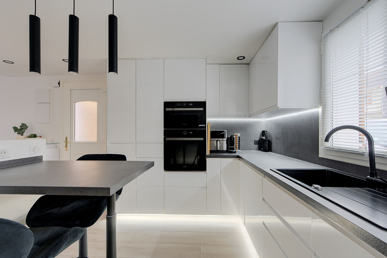 Select By Vielmon vous présente en exclusivité cette maison de 86 m² env entièrement rénovée en 2024 située dans un quartier résidentiel d'Aubergenville. Composée au RDC d'une entrée desservant une cuisine équipée et aménagée et d'un double séjour lumineux orienté Est-Ouest avec poêle à bois. Au 1er étage, vous trouverez 3 chambres et une salle d'eau. Un garage complète ce bien pouvant être aménagé en 4ème chambre facilement. A l'extérieur, vous trouverez un jardin avec une terrasse de 20m² en cours de finition avec possibilité de stationner 2 véhicules. Aucun travaux à prévoir. A visiter sans tarder ! Annonce rédigée sous la responsabilité de Xavier Laval (EI) - R.S.A.C : 910 405 380 Versailles (TEL : 06 61 41 32 39) Mail : xavier.laval@selectby.fr (5.04 % honoraires TTC à la charge de l'acquéreur.)