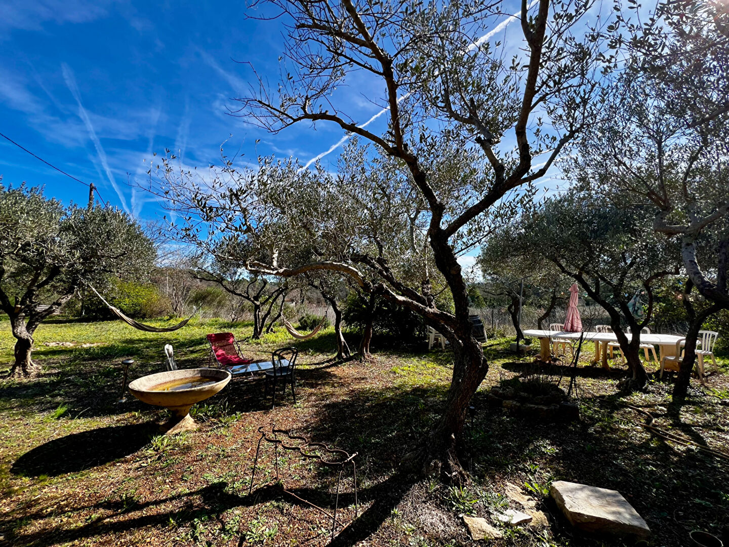 Sur la charmante commune de Cotignac, venez découvrir cette maison de plain-pied implantée sur un terrain plat de 2 141 m², joliment complanté d'oliviers et d'arbres fruitiers, offrant un cadre de vie paisible et verdoyant. La maison se compose d'une cuisine ouverte sur un salon agrémenté d'un poêle à bois. L'espace de vie se prolonge par une belle pièce vitrée d'environ 38,50 m² environ, parfaite comme salle à manger, jardin d'hiver ou espace détente. Côté nuit, vous trouverez, 3 chambres,1 bureau,1 salle d'eau, toilettes indépendantes. Un spacieux garage d'environ 47 m² environ complète ce bien. Possibilité d'agrandissement ou de création d'annexes, tout-à-l'égout.