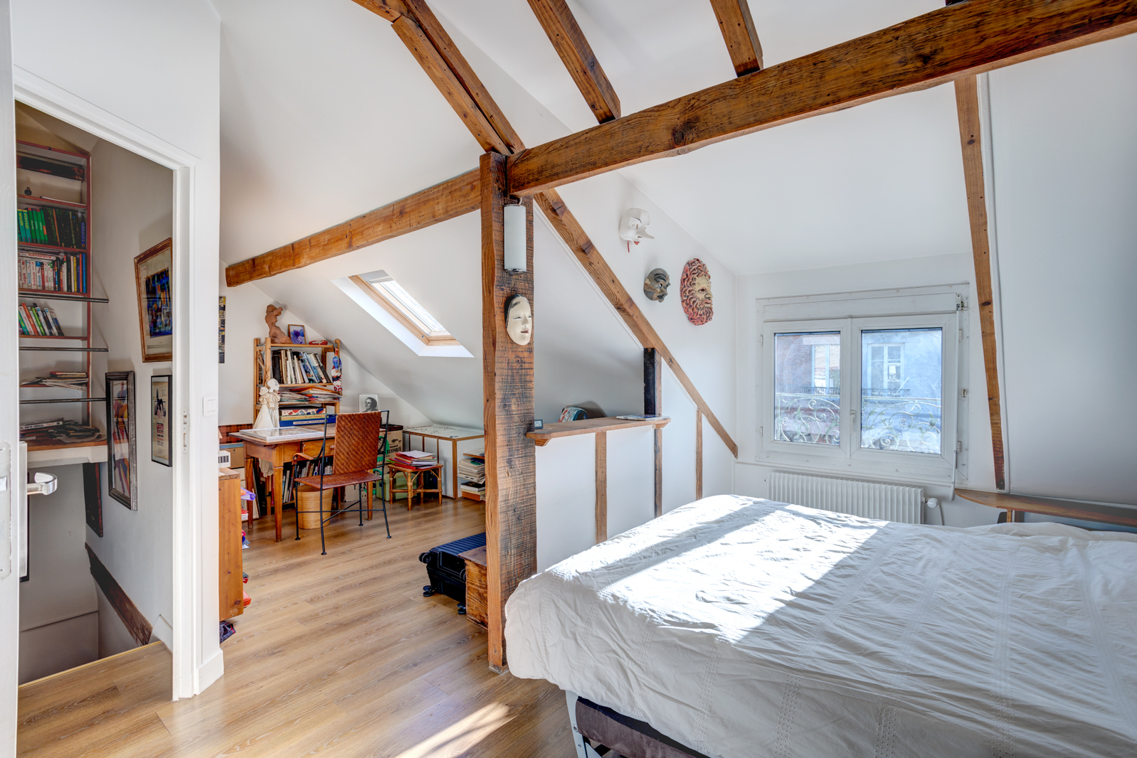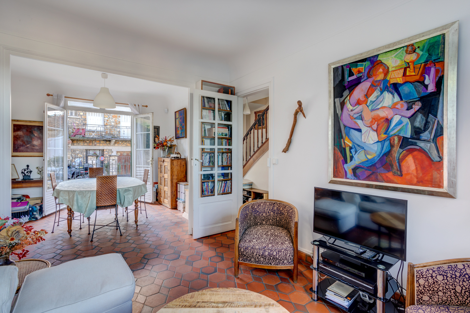 Jolie maison, dans une rue bucolique très calme, au coeur du quartier Val Fleury, à proximité des écoles, commerces et RERC. Sur un terrain de 250m², cette maison d'environ 145m² se compose d'une entrée ouvrant sur un double séjour traversant lumineux avec cheminée et accès à une terrasse, une cuisine dinatoire séparée agrandie en 2012 avec accès jardin et des wc. Au 1er étage, 2 chambres, un bureau , des rangements, une salle de douche avec wc. Au 2ème étage, 1 chambre avec espace bureau, un bureau ou petite chambre et une salle de bains avec wc. Au sous-sol, un espace buanderie/atelier, un espace de jeux ou rangement et une cave. Rangement extérieur sous l'escalier.