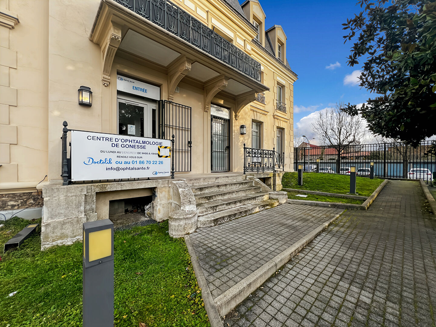 SPECIAL INVESTISSEUR A VENDRE LOCAL PROFESSIONNEL OCCUPE PAR CABINET D'OPHTALMOLOGIE-CENTRE VILLE DE GONESSE C?UR DE VILLE FACE A LA MAIRIE DE GONESSE Saintville Habitat vous propose en exclusivité ce local professionnel d'environ 220m2, situé au rez-de-chaussée d'une Résidence privée, et loué par un cabinet d'ophtalmologie (Ophtal Santé) depuis décembre 2020, emplacement premium en plein centre-ville de GONESSE, face à la mairie. L'immeuble a été réhabilité en 2018. Le local a entièrement été refait par les locataires, prestations récentes, climatisation réversible, équipements récents, accès PMR conforme aux normes. Il comprend au rez-de-chaussée une entrée, des WC, un accueil, trois salles d'attentes, plusieurs box médicaux, bureau/archives, 2 salles d'eau avec WC, au sous-sol accessible du rez-de-chaussée ainsi que par l'extérieur, bureaux, salle de repos, cuisine, salle de repas/réunion, salle d'eau + WC, local archive, cave. Stationnement : -4 places de parking privées (2 devant le cabinet + 2 dans la résidence) -Parking communal réservé aux médecins et à leur patientèle juste devant le cabinet Double accès : -Entrée clientèle à l'avant -Accès personnel à l'arrière de la résidence Investissement sécurisé avec locataire médical en place depuis décembre 2020, activité stable et recherchée, visibilité locative de longue durée et stabilité des revenus. Aspects financiers : -Loyer mensuel : 4198,60 euros / HC, non soumis à TVA -Loyer annuel : 50 383,20 euros / HC -Révision du loyer annuel : loyer révisé tous les ans -Taxe foncière annuelle: 3865 euros (dont 531 euros à la charge du locataire en remboursement de la taxe d'ordures ménagères ) -Charges de copropriété annuelles : 4667 euros dont 3120 euros remboursés par le locataire en plus du loyer -Reste à charge bailleur en terme de charges annuelles de copropriété : 1547 euros -Revenus locatifs annuels : 50 383,20 euros HC Copropriété de 30 lots - dont 9 lots habitation. Charges annuelles : 4667 euros.
