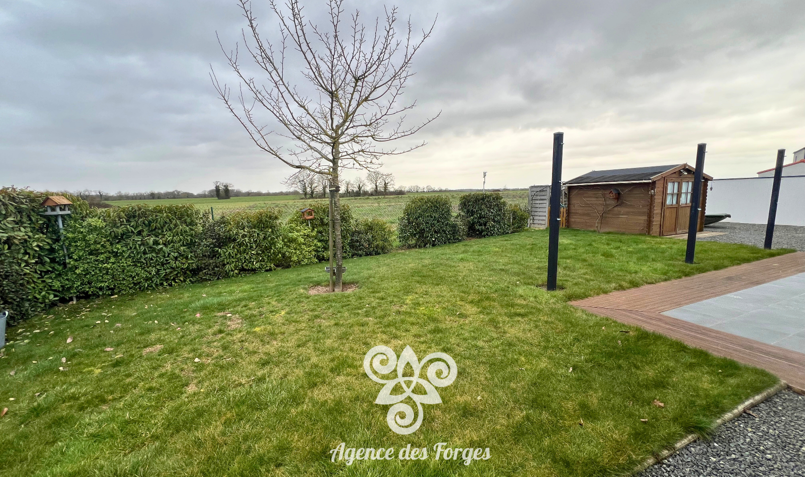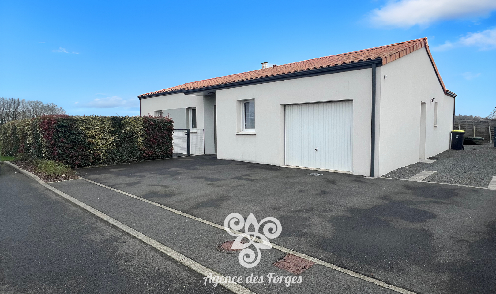Dans le bourg de SAINT LUMINE DE CLISSON, en impasse, au calme, avec vue dégagée sur la nature, L'Agence des Forges présente en EXCLUSIVITE : maison individuelle de plain-pied, sous garantie décennale (2019) d'environ 105 m² comprenant : entrée avec placard / séjour salon (35 m²) / cuisine (14 m²) totalement équipée et aménagée/ cellier / WC/ 3 chambres et bureau/ Salle de bains. Garage attenant ( 19 m²) Le tout sur une parcelle d'environ 600 m². Cabanon de jardin / Terrasse carrelée. LE PLUS : Auncun vis-à-vis et superbe vue sur la nature. -Chauffage au sol par pompe à chaleur. -Tout à l'égout conforme - Descente pour conduit de cheminée dans le séjour - Aspiration centralisée. - Fibre. Pour une visite, contactez Sophie DRONNEAU (agent commercial au numéro RSAC 81281932400011) (4.45 % honoraires TTC à la charge de l'acquéreur.)