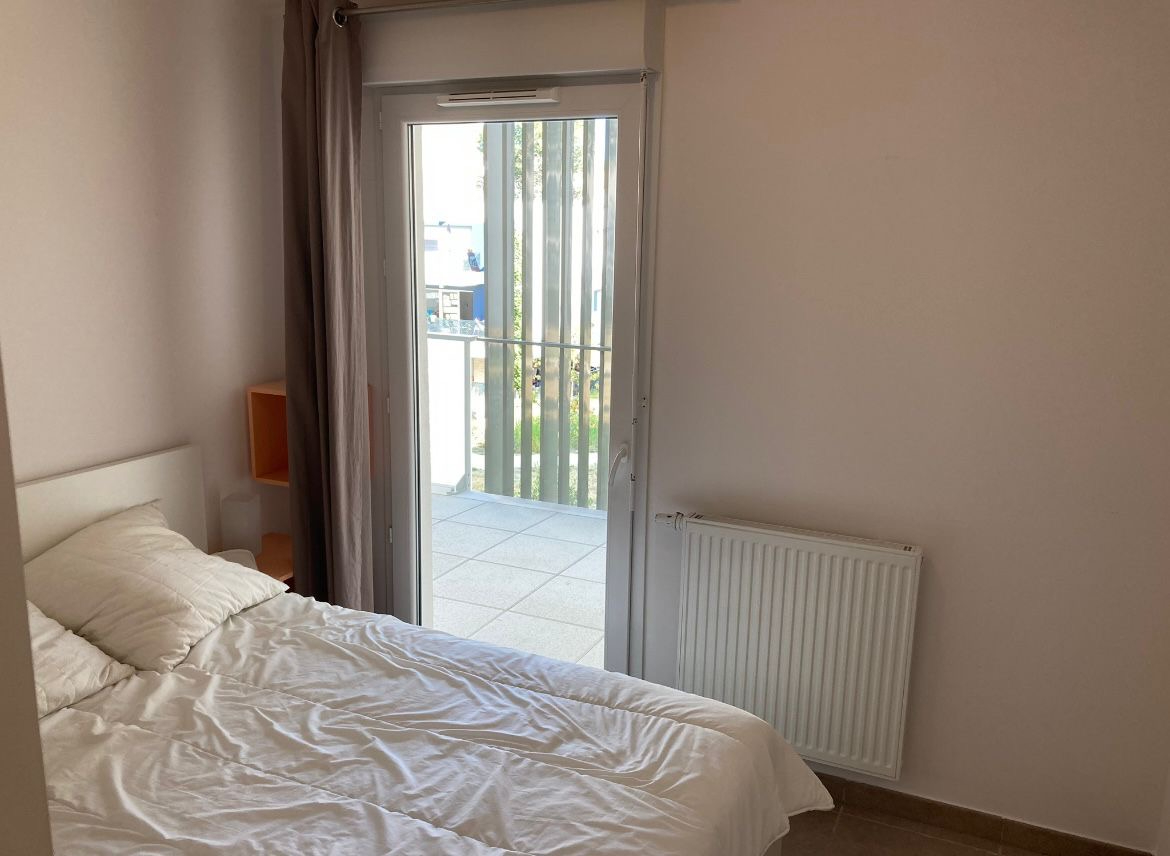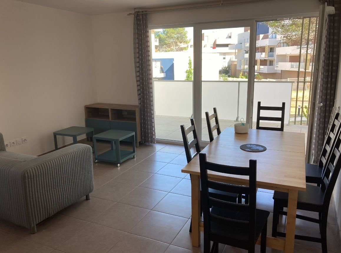 Résidence Green Garden - Montpellier 1006 Rue de La Croix Verte Très beau T3 meublé au 1er étage de 57.80m² avec terrasse de 12.40m². L'appartement se compose d'un séjour - cuisine équipée de 24.50m², de deux chambres de 11m² et 9.06m², salle de bain de 4.96m² et d'un WC séparé. 1 place de parking sous-sol incluse. Loyer de 936,74 euros charges comprises (dont 75 euros de charges comprenant le chauffage, l'eau chaude et l'entretien des parties communes). Les honoraires sont de 550 euros (dont 150 euros pour l'état des lieux). Disponible à partir du 24 Mars.