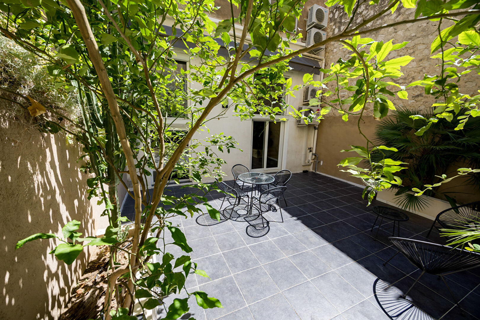 APPARTEMENT DUPLEX - 90 M2 - TERRASSE - GARAGE Au sein d'un immeuble bourgeois de bon standing, au coeur du très prisé quartier de Vauban; Découvrez un appartement d'architecte de 90 m2, en duplex inversé, audacieusement retravaillé dans un esprit loft contemporain, offrant de généreux volumes et des prestations de grande qualité. Il se compose d'un vaste espace de vie avec cuisine ouverte, aménagée et équipée ainsi que d'un salon suspendu. Desservies par un escalier en verre, un bureau, deux chambres avec rangements ainsi qu'une salle de bains avec baignoire balnéothérapie. L'ensemble donnant sur une terrasse arborée et aménagée de 45 m2, côté cour au calme absolu. Climatisation réversible dans toutes les pièces. Idéalement situé à proximité des commerces et des écoles, aux pieds de Notre Dame de la Garde et à quelques pas du Vieux-Port. Possibilité garage fermé en sus. Plus d'informations sur demande. Copropriété de 6 lots - dont 6 lots habitation. Charges annuelles : 1440 euros.